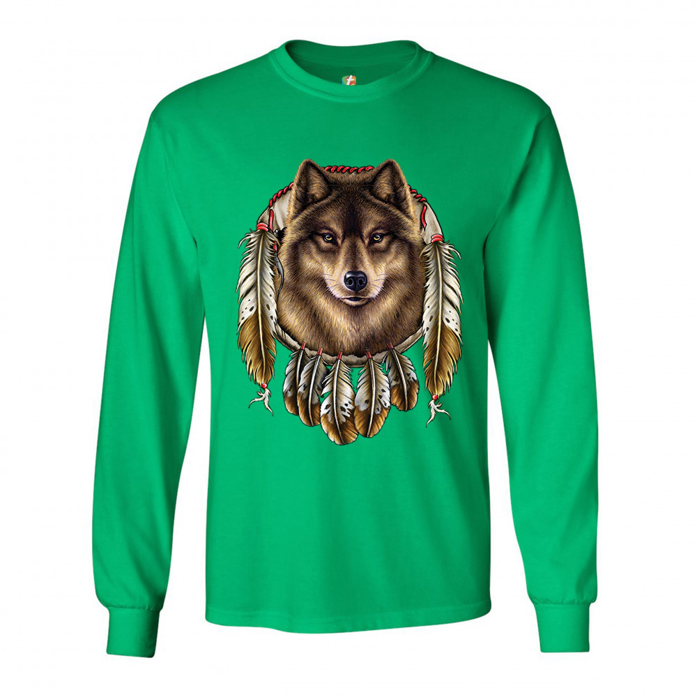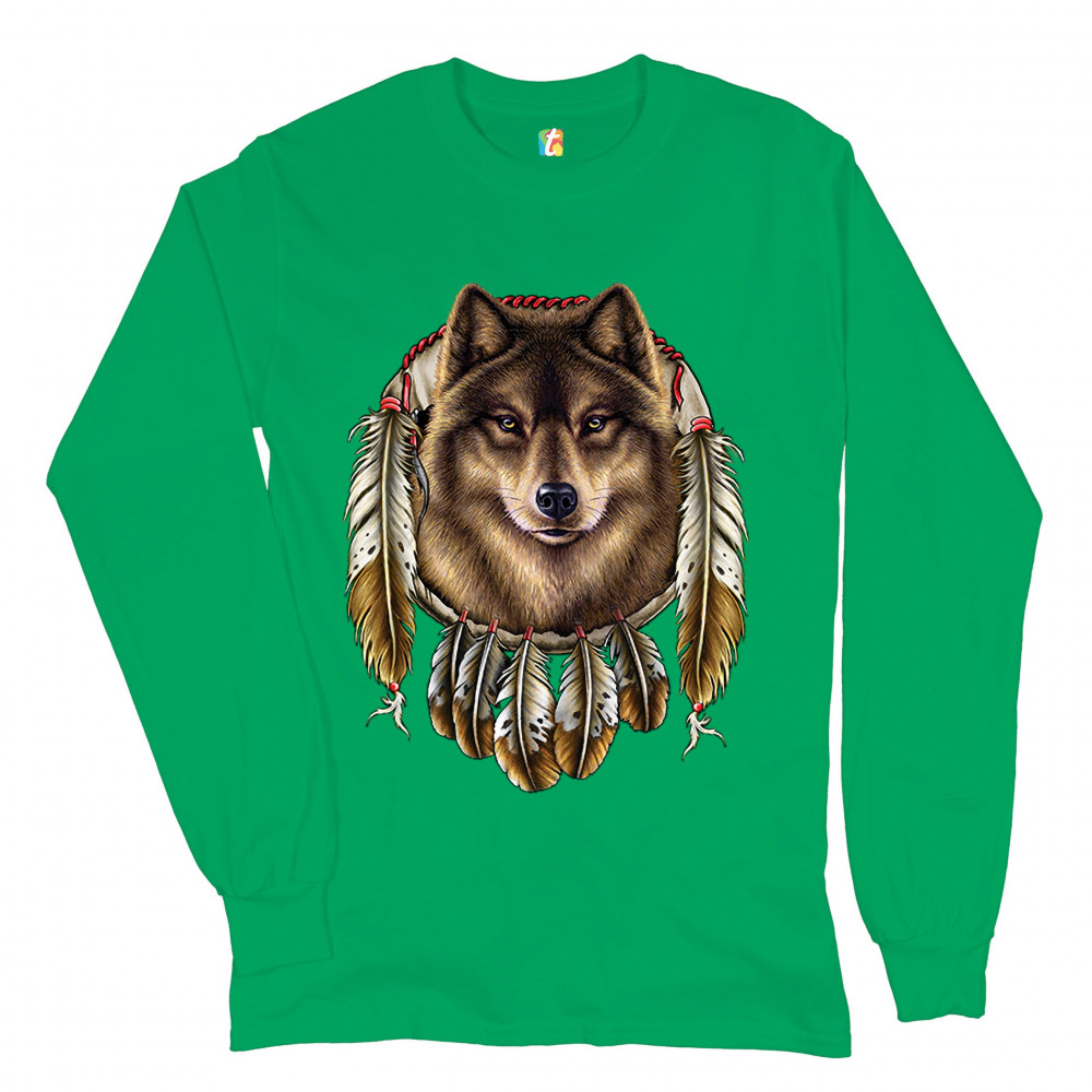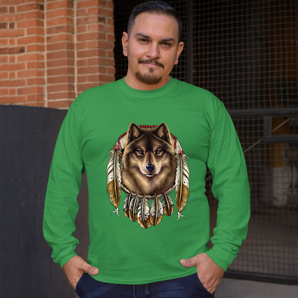 WOLF SPIRIT long sleeve t-shirt native american dreamcatcher indigenous green