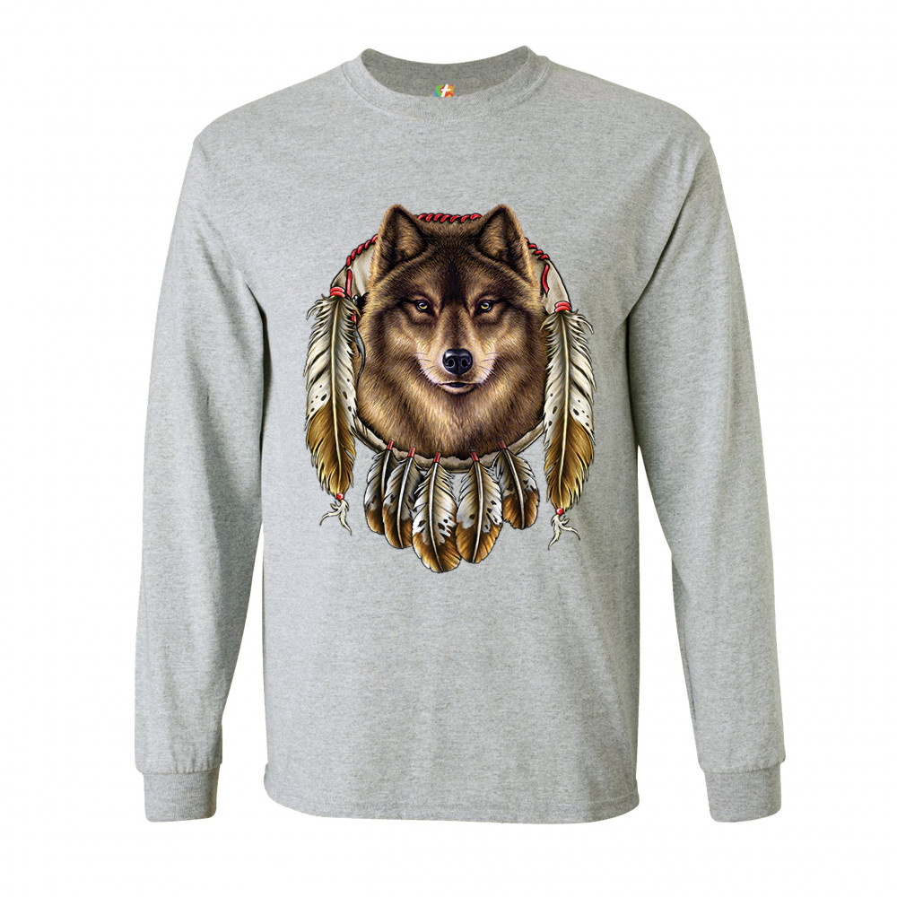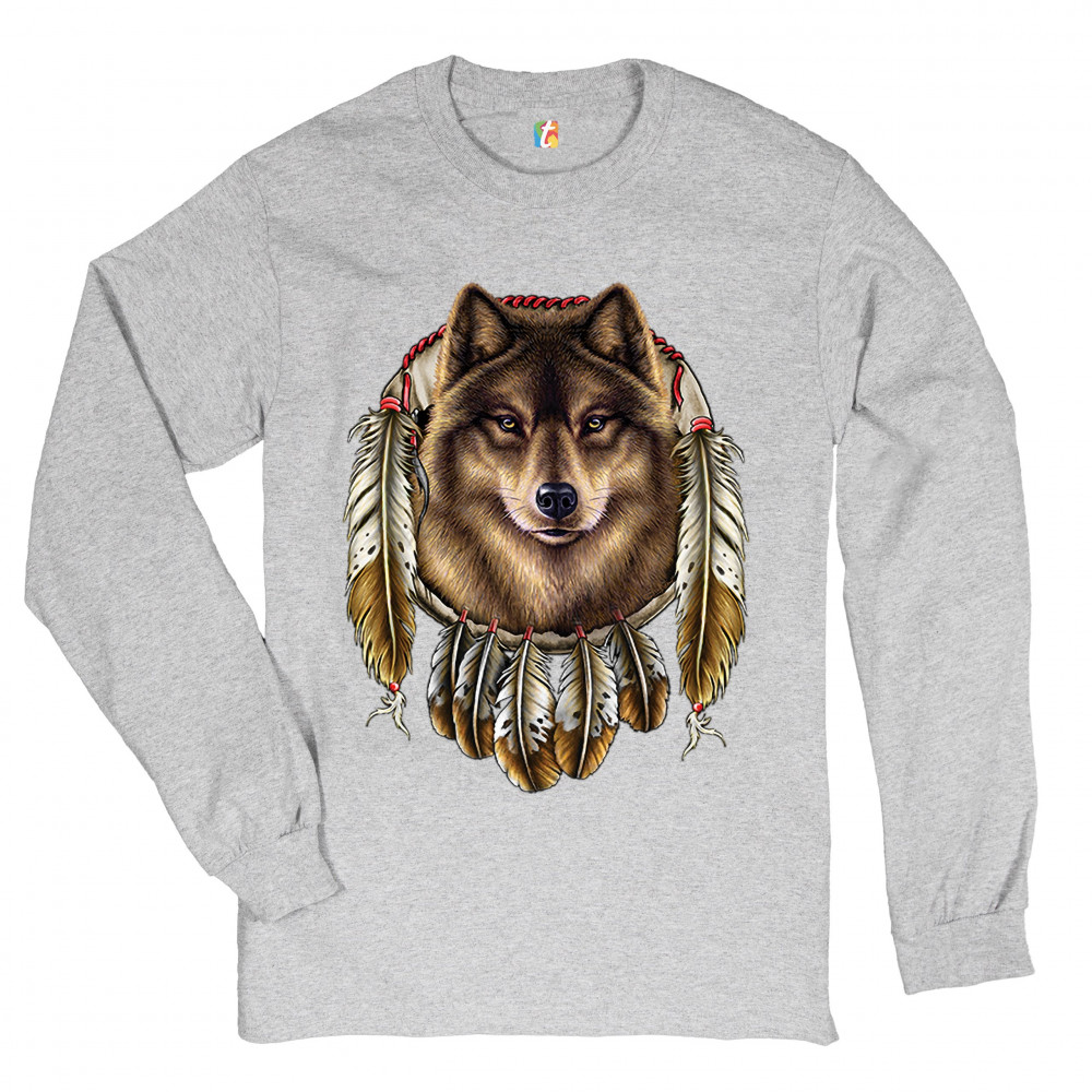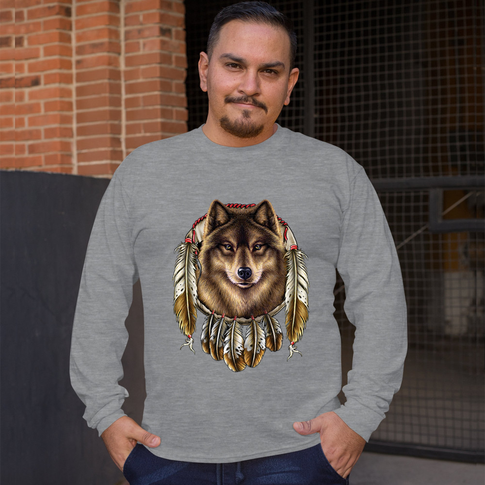 WOLF SPIRIT long sleeve t-shirt native american dreamcatcher indigenous gray