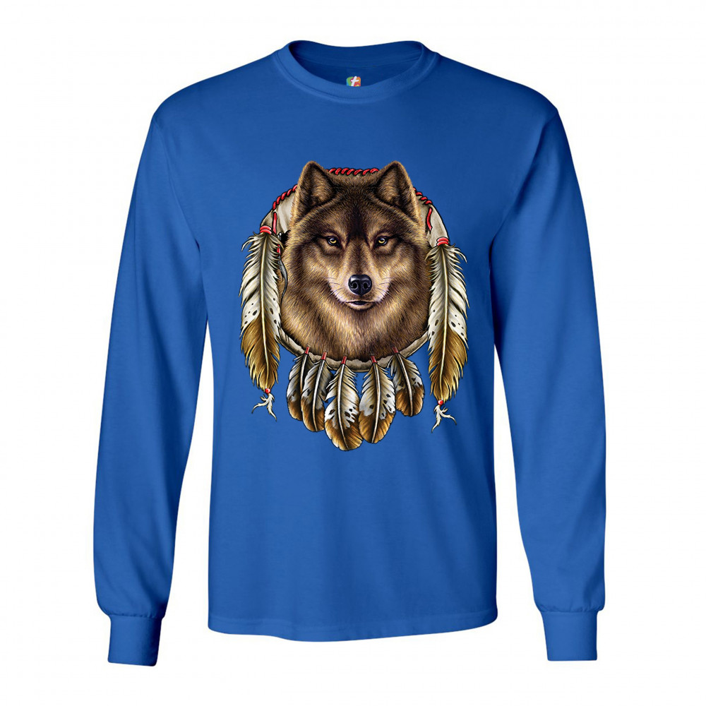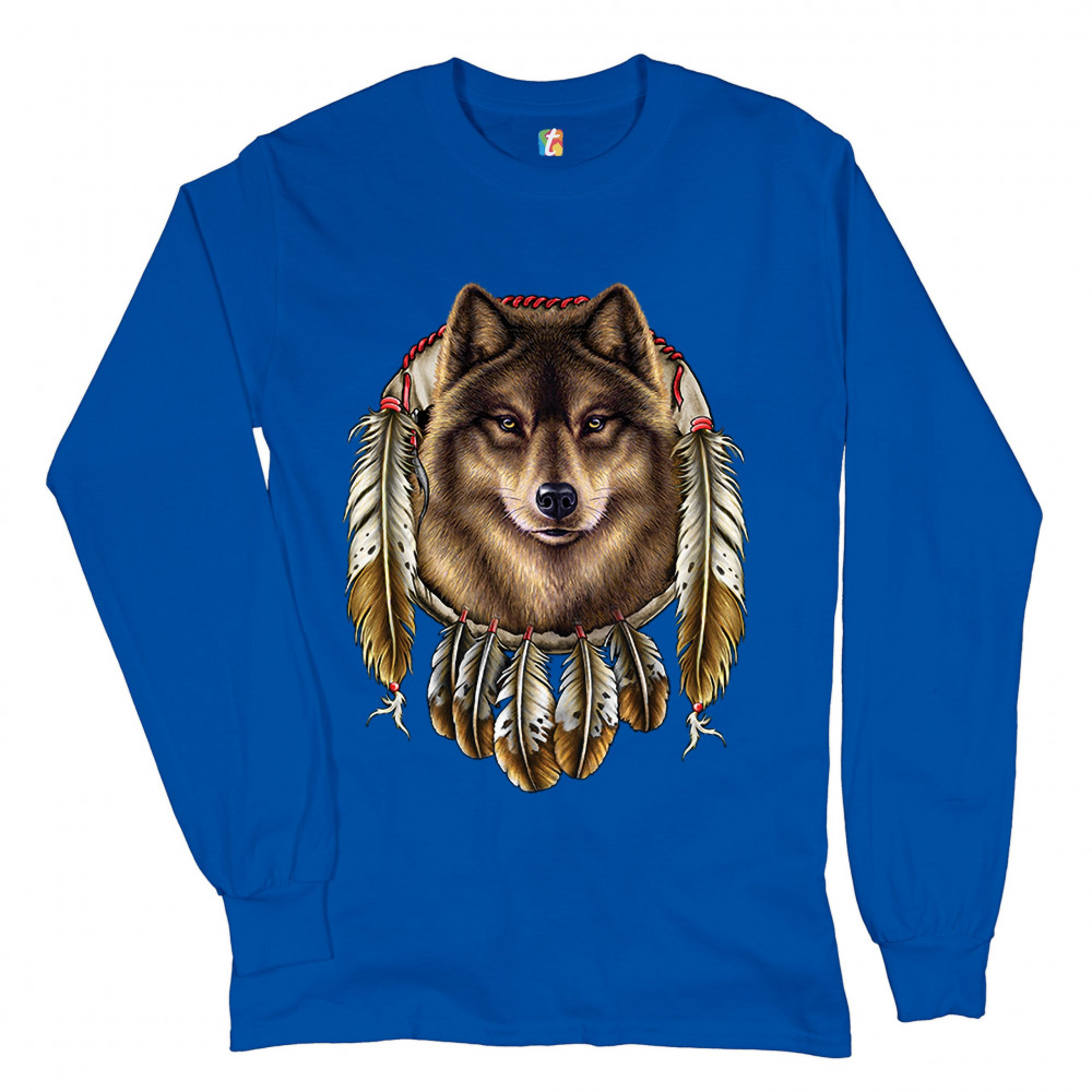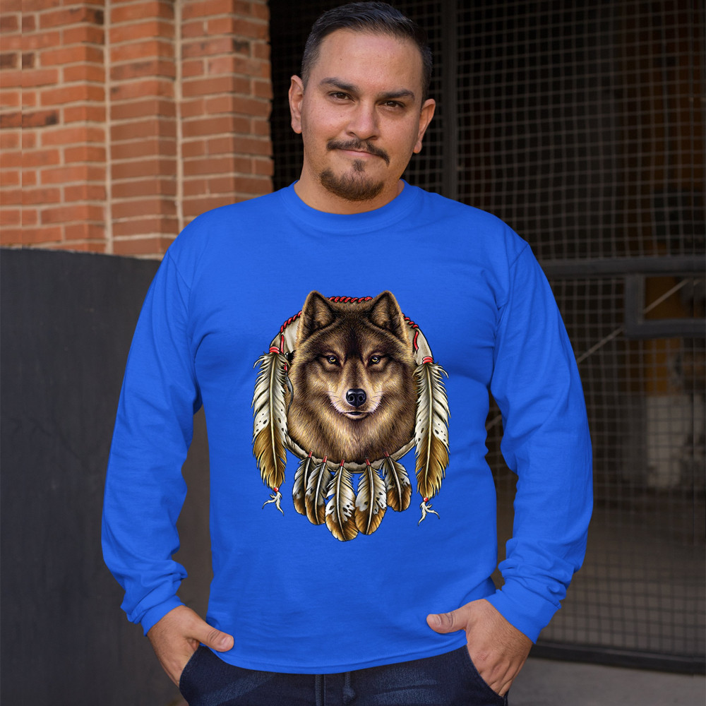 WOLF SPIRIT long sleeve t-shirt native american dreamcatcher indigenous royal blue