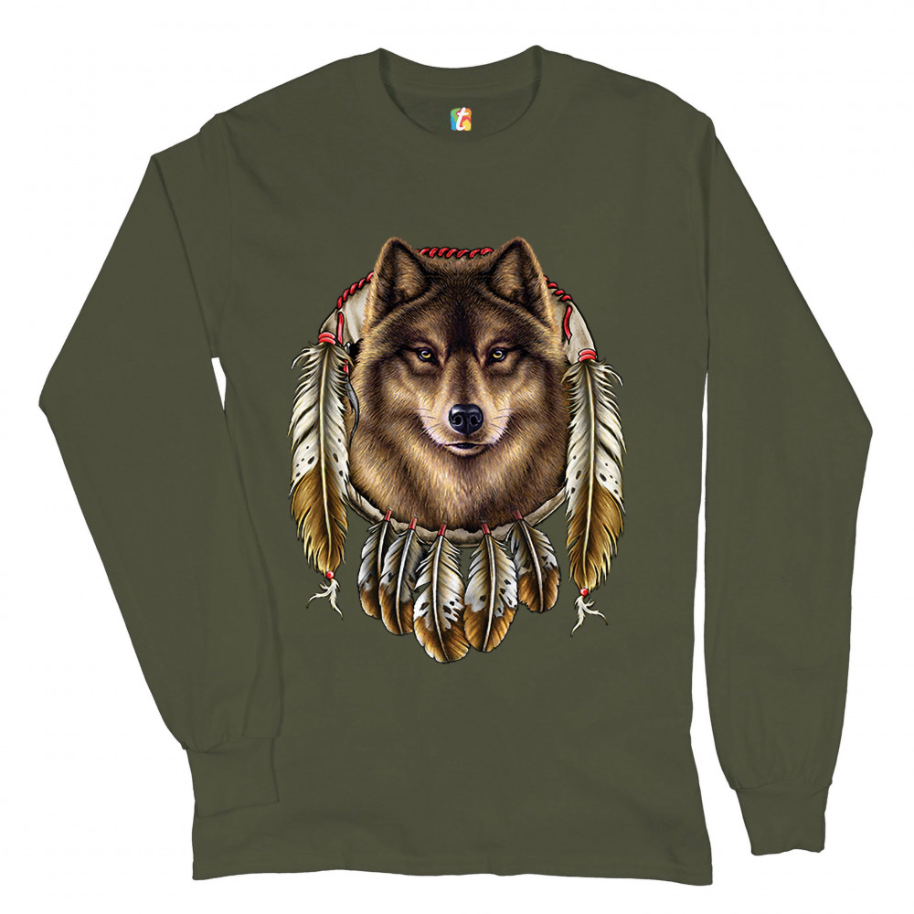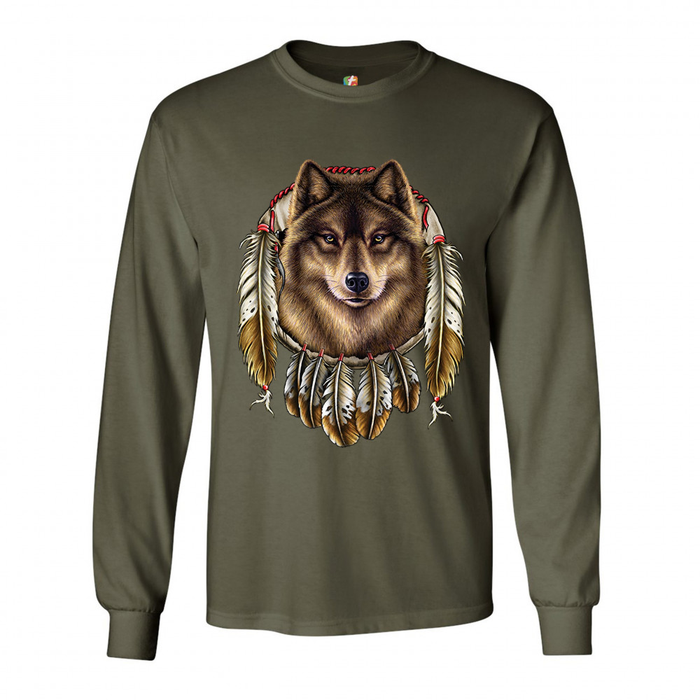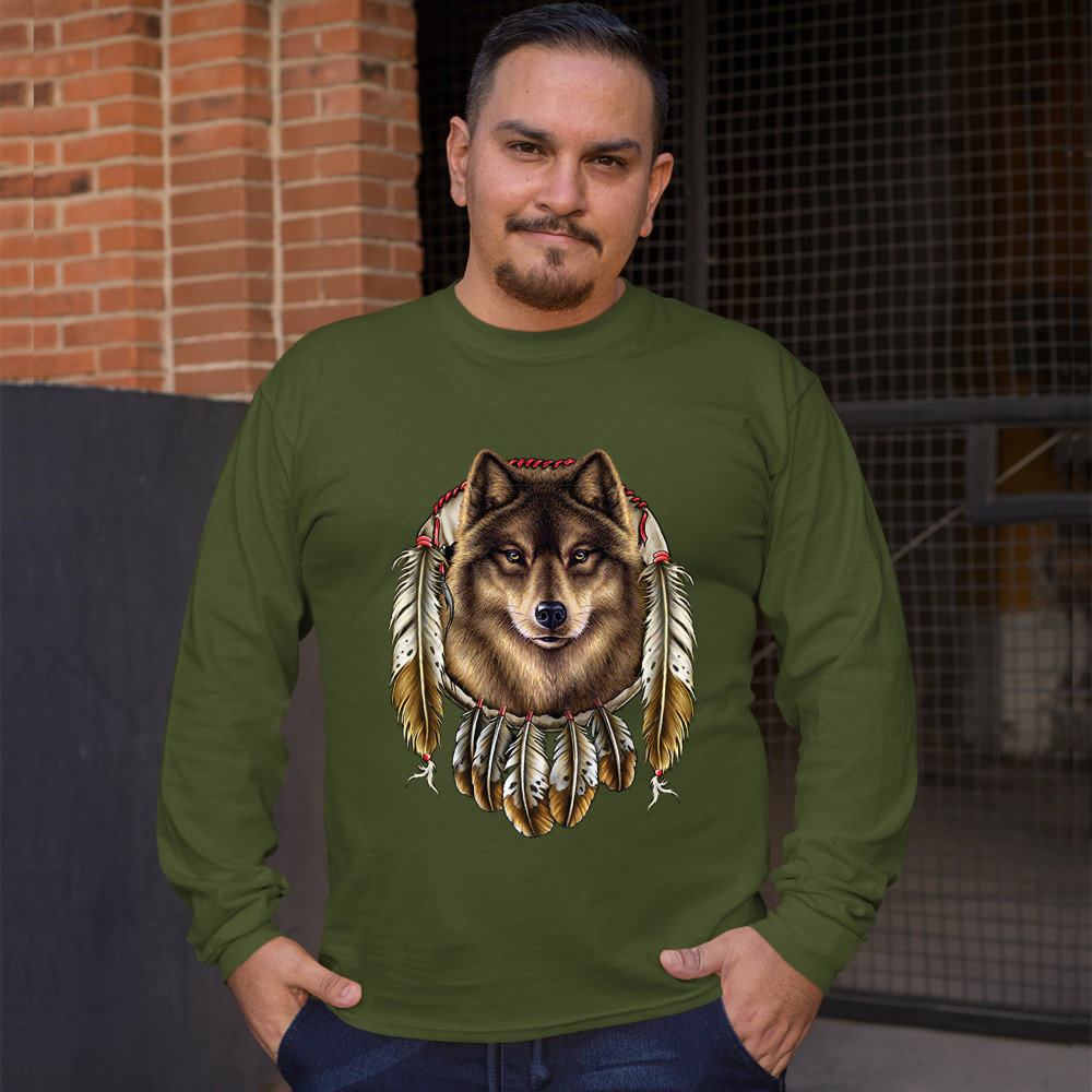 WOLF SPIRIT long sleeve t-shirt native american dreamcatcher indigenous military green