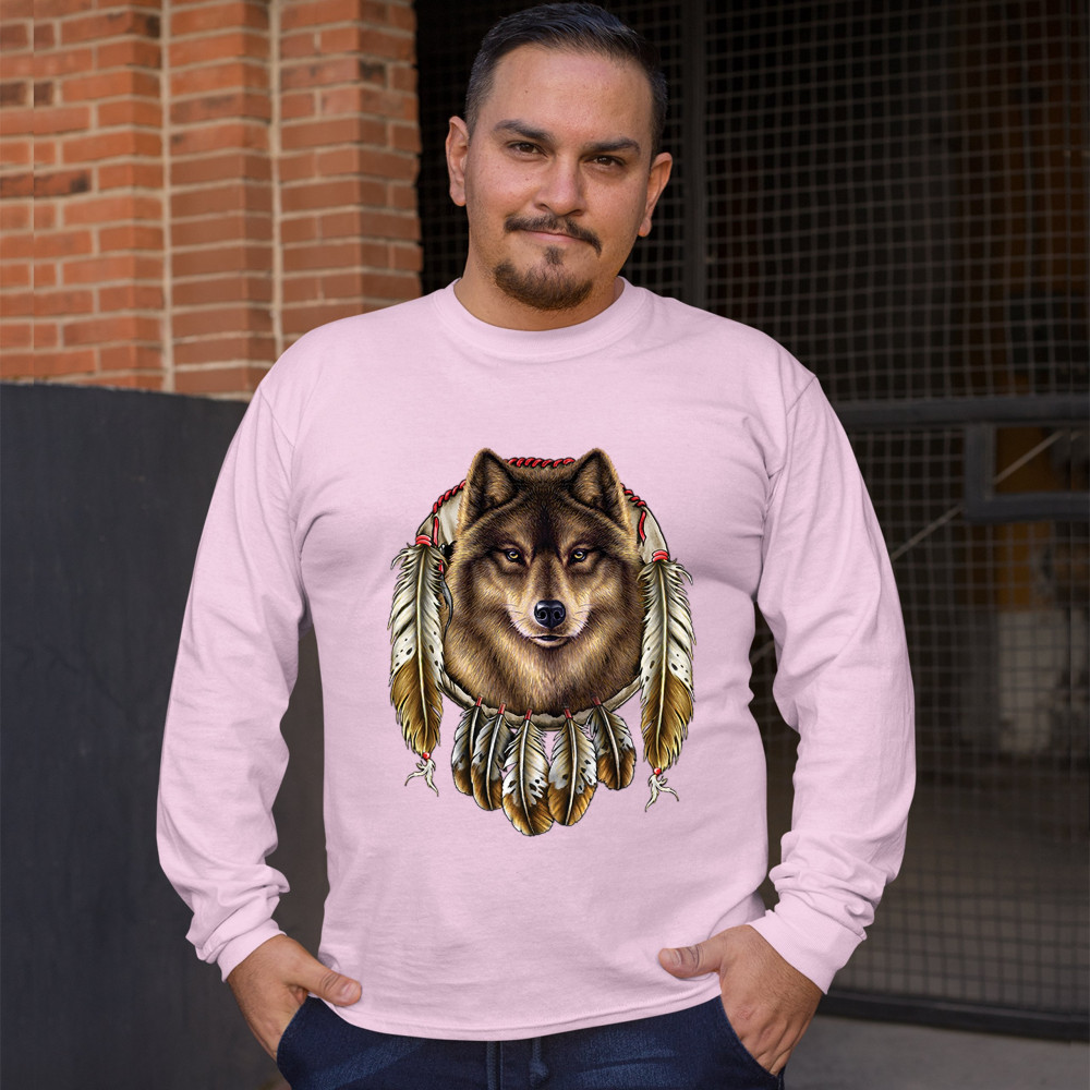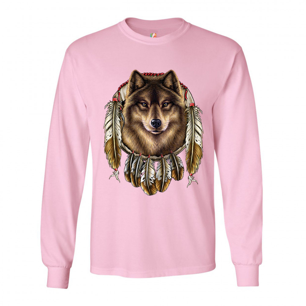 WOLF SPIRIT long sleeve t-shirt native american dreamcatcher indigenous pink