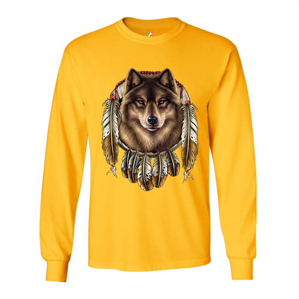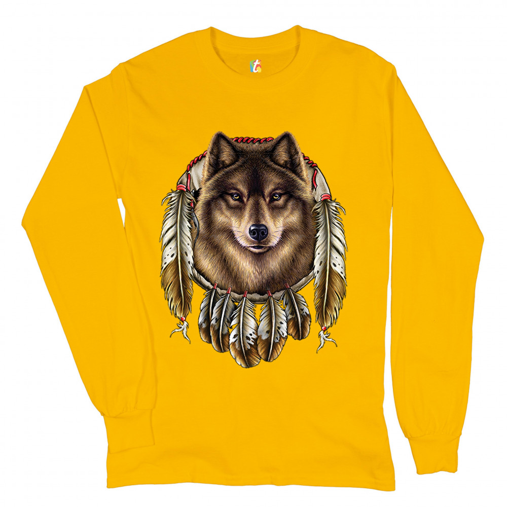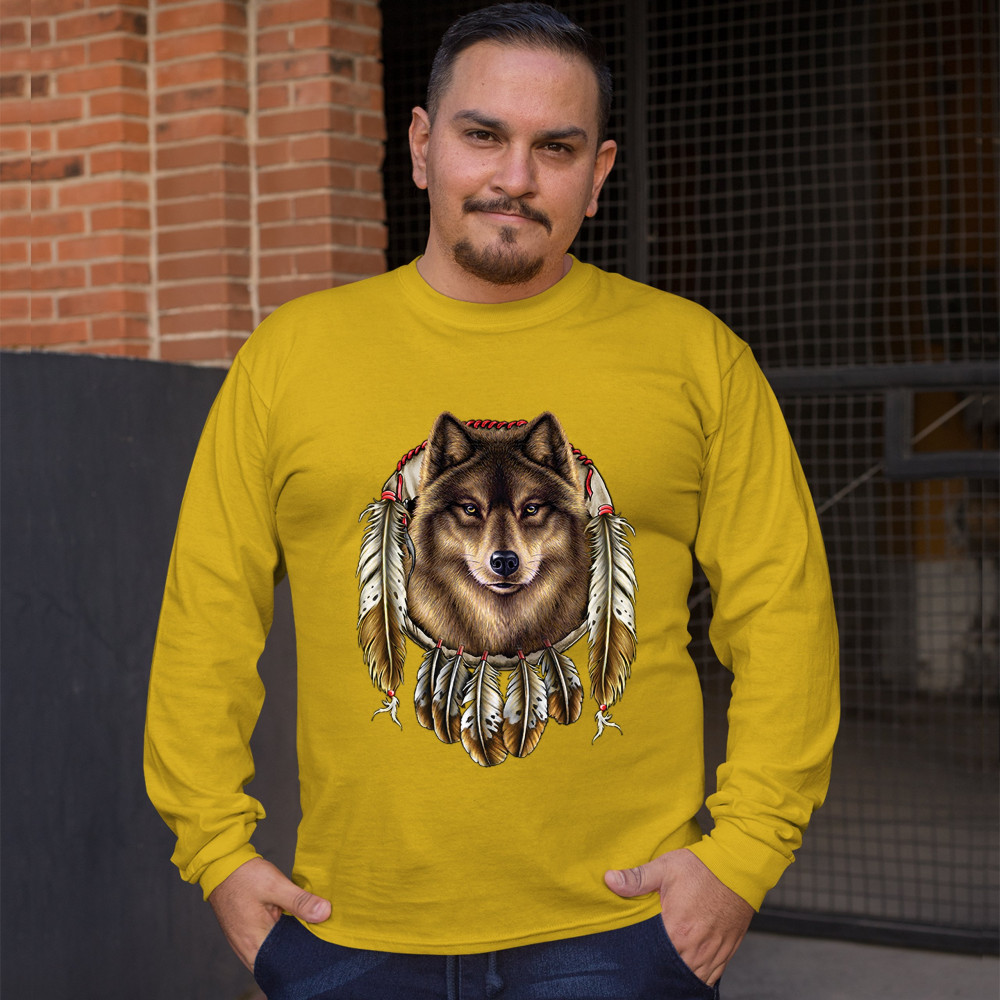 WOLF SPIRIT long sleeve t-shirt native american dreamcatcher indigenous yellow