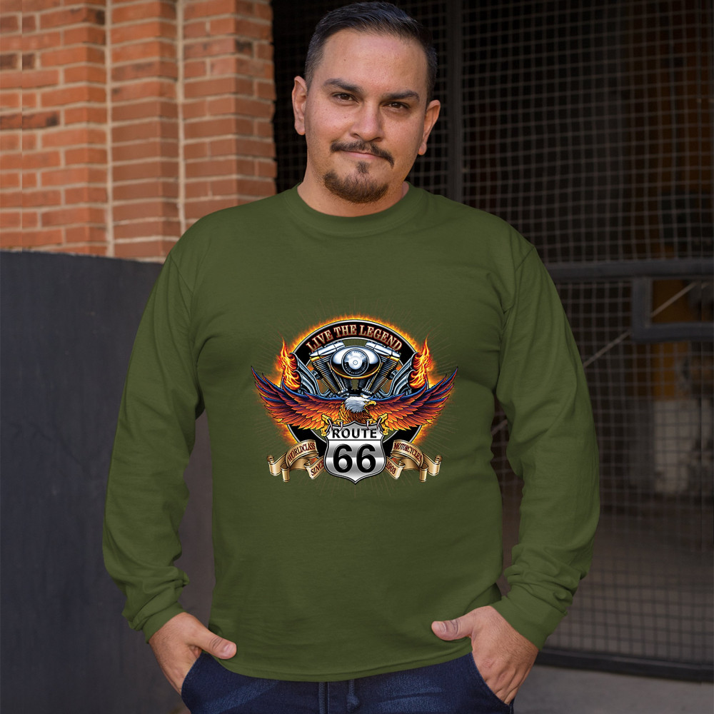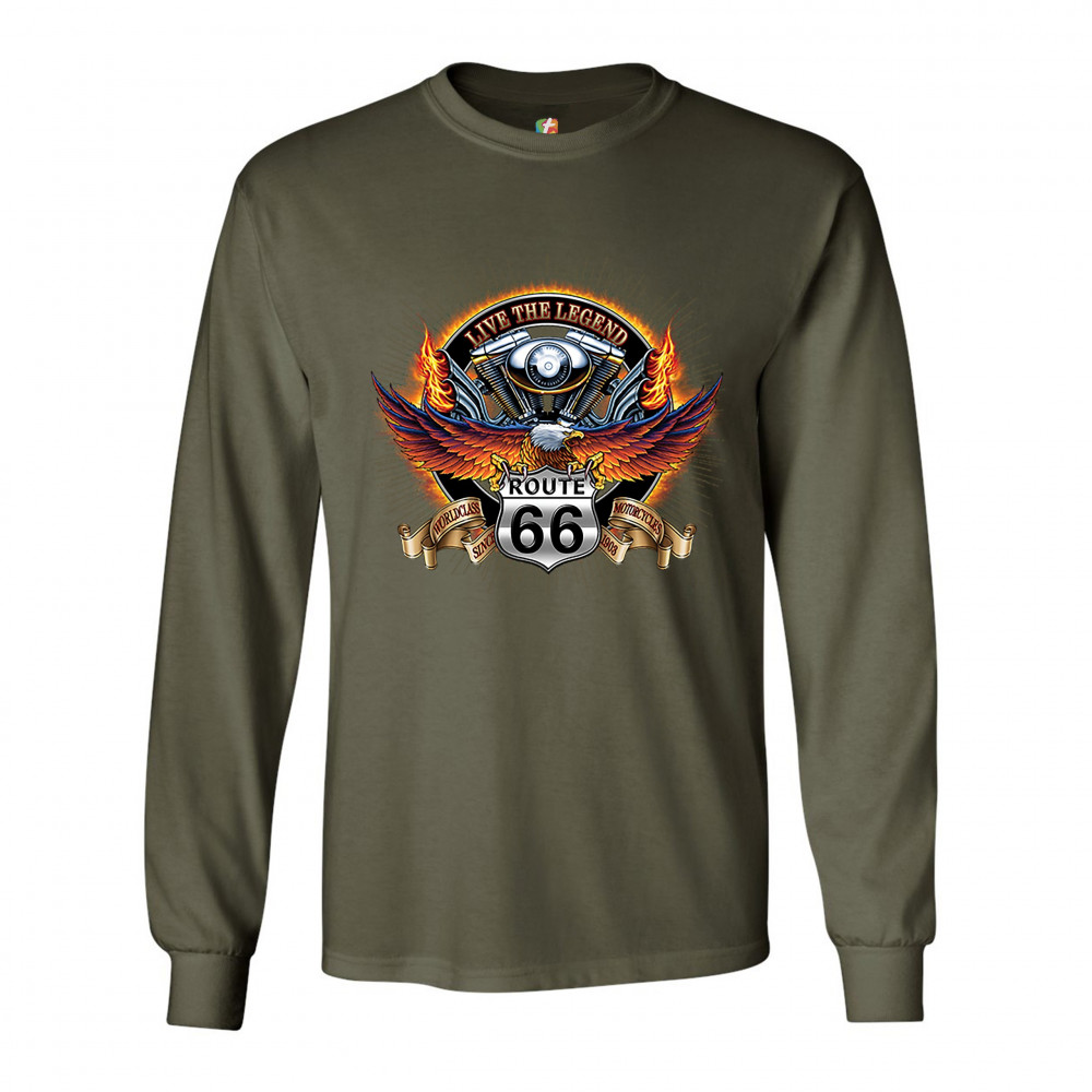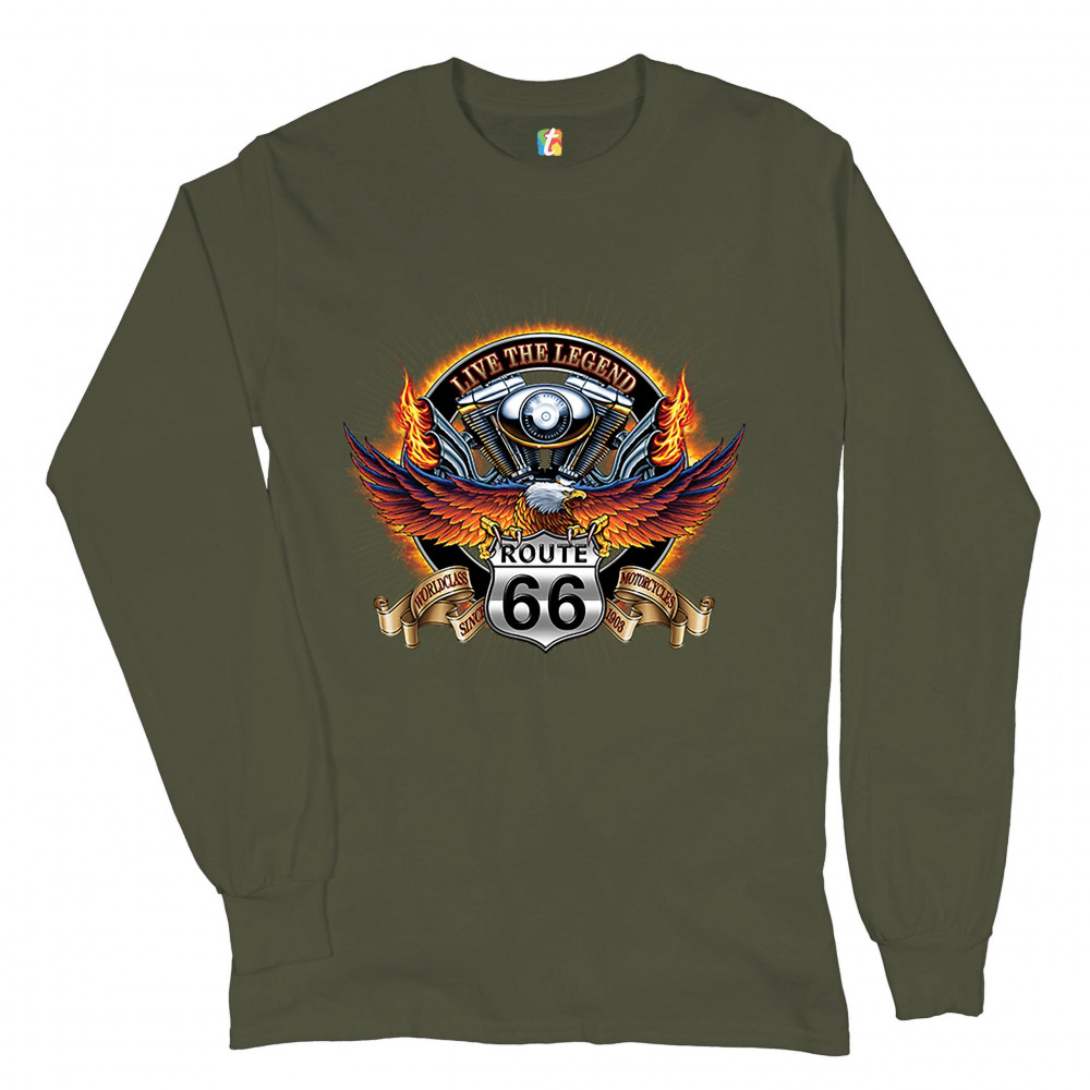 WORDCLASS MOTORCYCLES long sleeve t-shirt live the legend route 66 biker military green