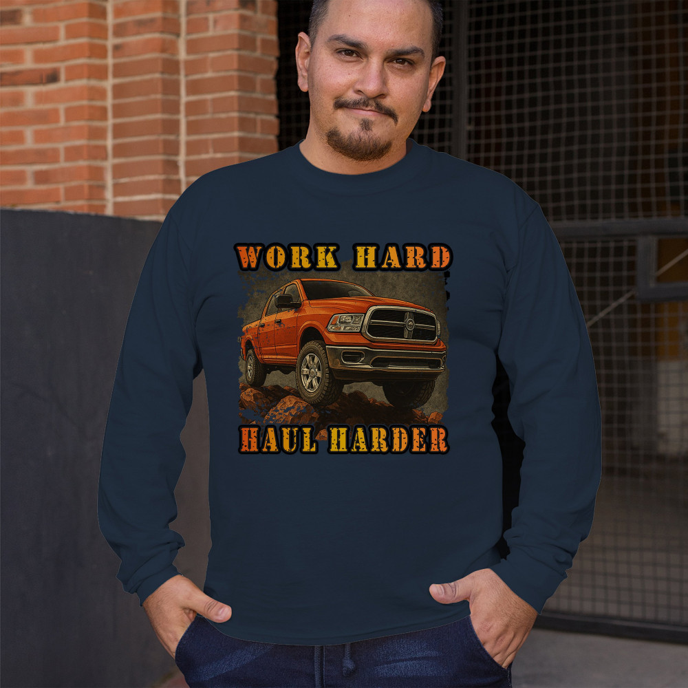 Built for those who know what it means to grind, this bold orange pickup design honors strength, power, and grit. Featuring the “Work Hard Haul Harder†motto, it’s made for job site heroes, off-road warriors, and 4x4 enthusiasts who drive machines that never quit. Show your pride in performance and purpose.