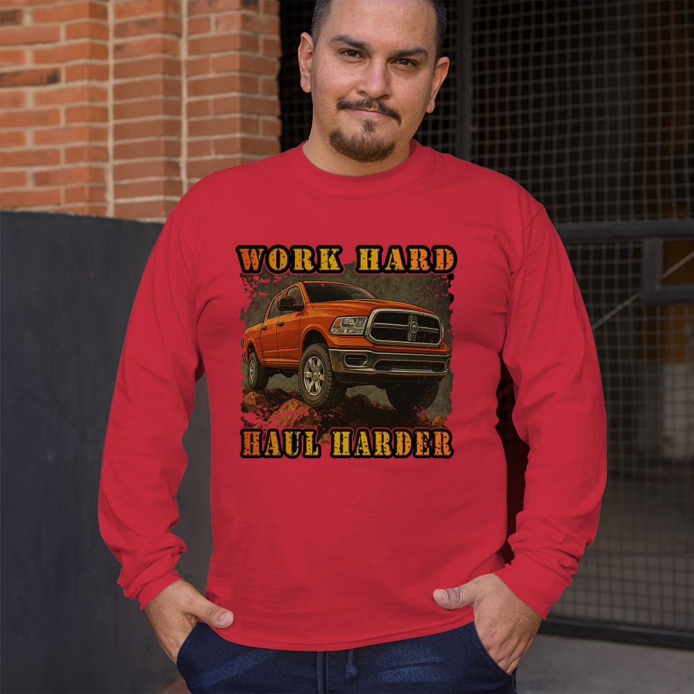 Built for those who know what it means to grind, this bold orange pickup design honors strength, power, and grit. Featuring the “Work Hard Haul Harder†motto, it’s made for job site heroes, off-road warriors, and 4x4 enthusiasts who drive machines that never quit. Show your pride in performance and purpose.