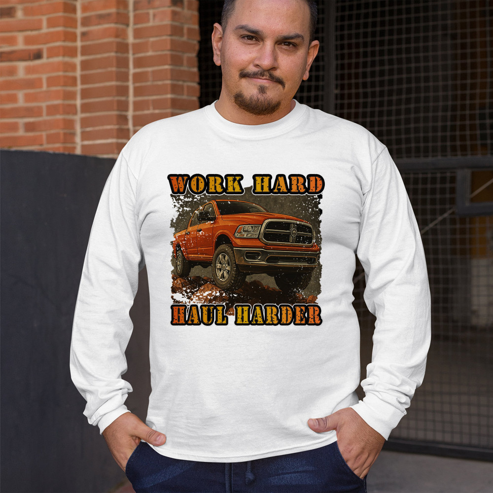 Built for those who know what it means to grind, this bold orange pickup design honors strength, power, and grit. Featuring the “Work Hard Haul Harder†motto, it’s made for job site heroes, off-road warriors, and 4x4 enthusiasts who drive machines that never quit. Show your pride in performance and purpose.