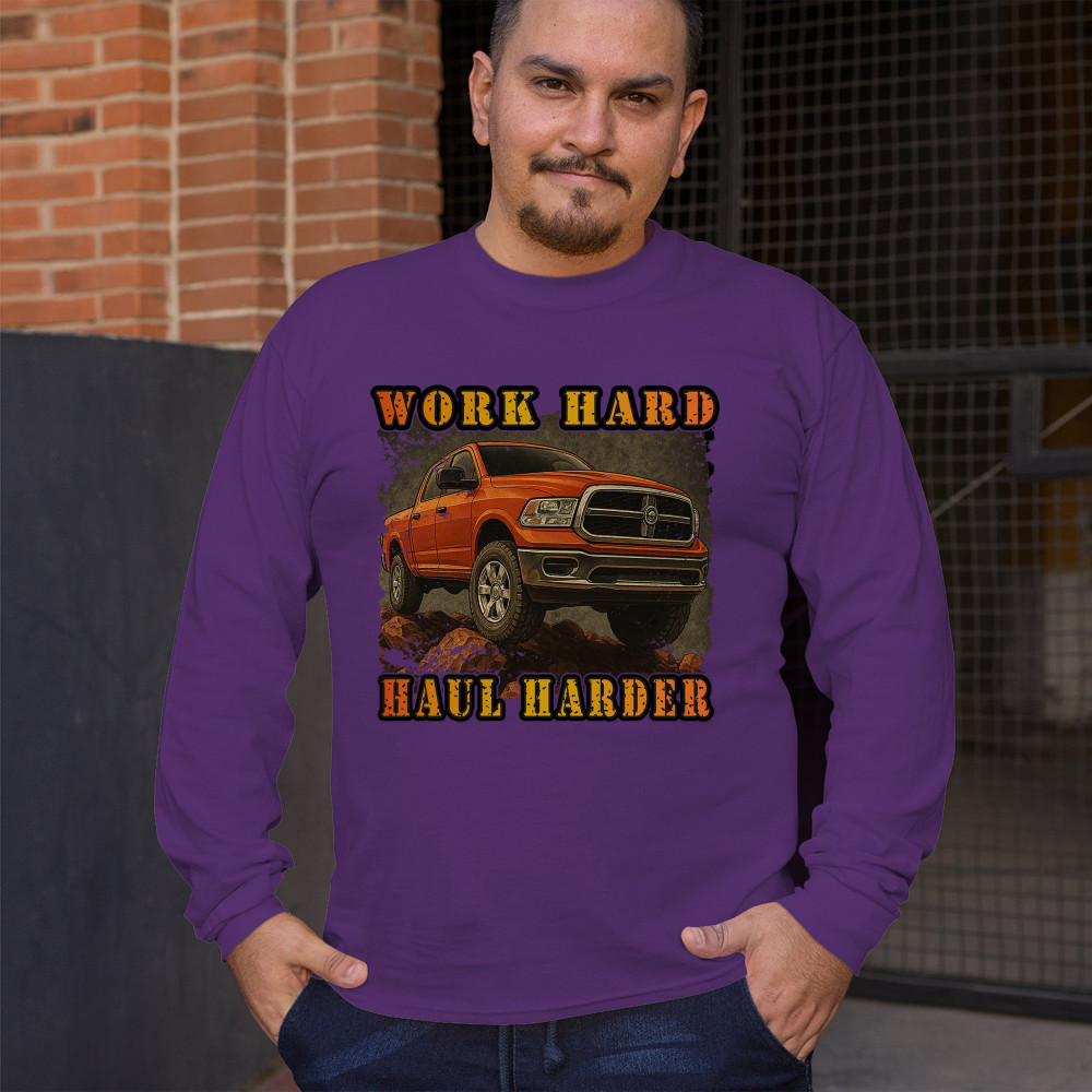 Built for those who know what it means to grind, this bold orange pickup design honors strength, power, and grit. Featuring the “Work Hard Haul Harder†motto, it’s made for job site heroes, off-road warriors, and 4x4 enthusiasts who drive machines that never quit. Show your pride in performance and purpose.