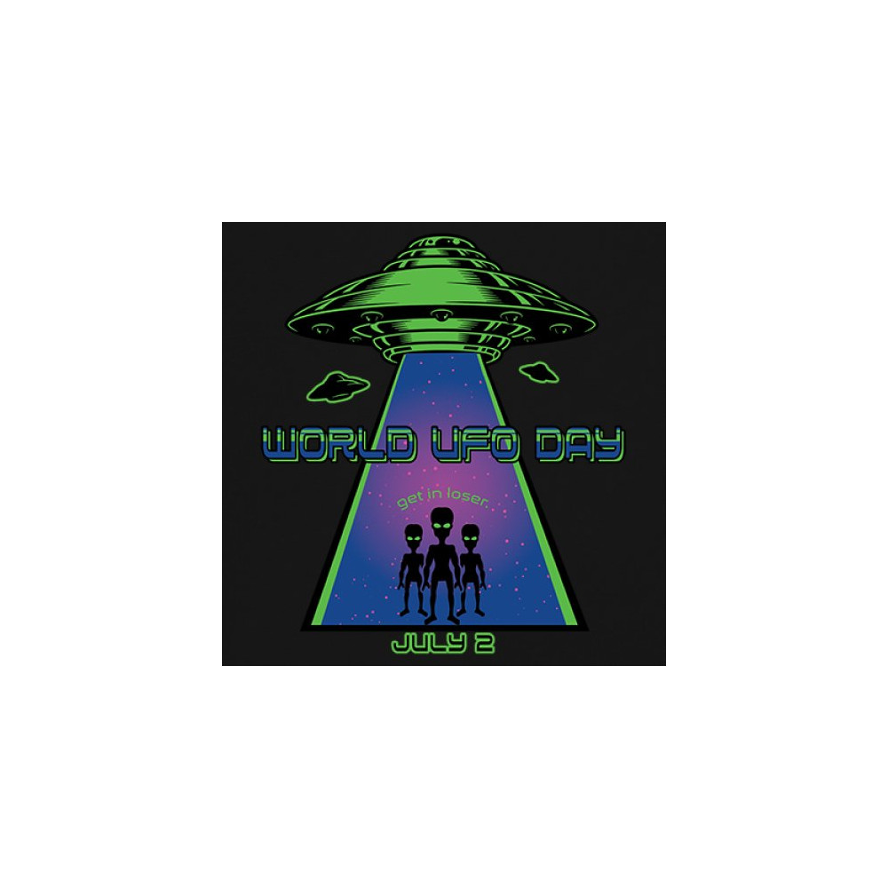 Join the celebration of World UFO Day with this unique design, featuring a detailed UFO beaming up three cheerful aliens with the phrase "Get in, loser." Perfect for those who are fascinated by the unknown and have a sense of humor about extraterrestrial life. Whether you're attending a UFO event, meeting with fellow enthusiasts, or just want to express your quirky style, this design is a must-have. Embrace the spirit of curiosity and fun with this eye-catching design for July 2nd.