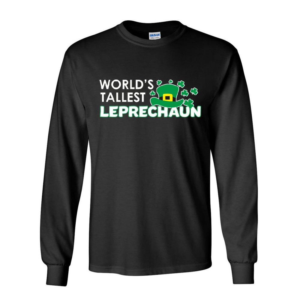 WORLDS TALLEST LEPRECHAUN long sleeve t-shirt st patrick's day shamrock beer tee black