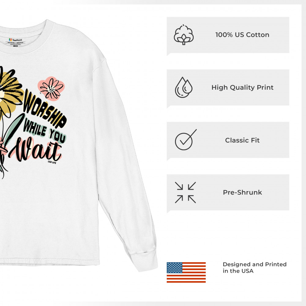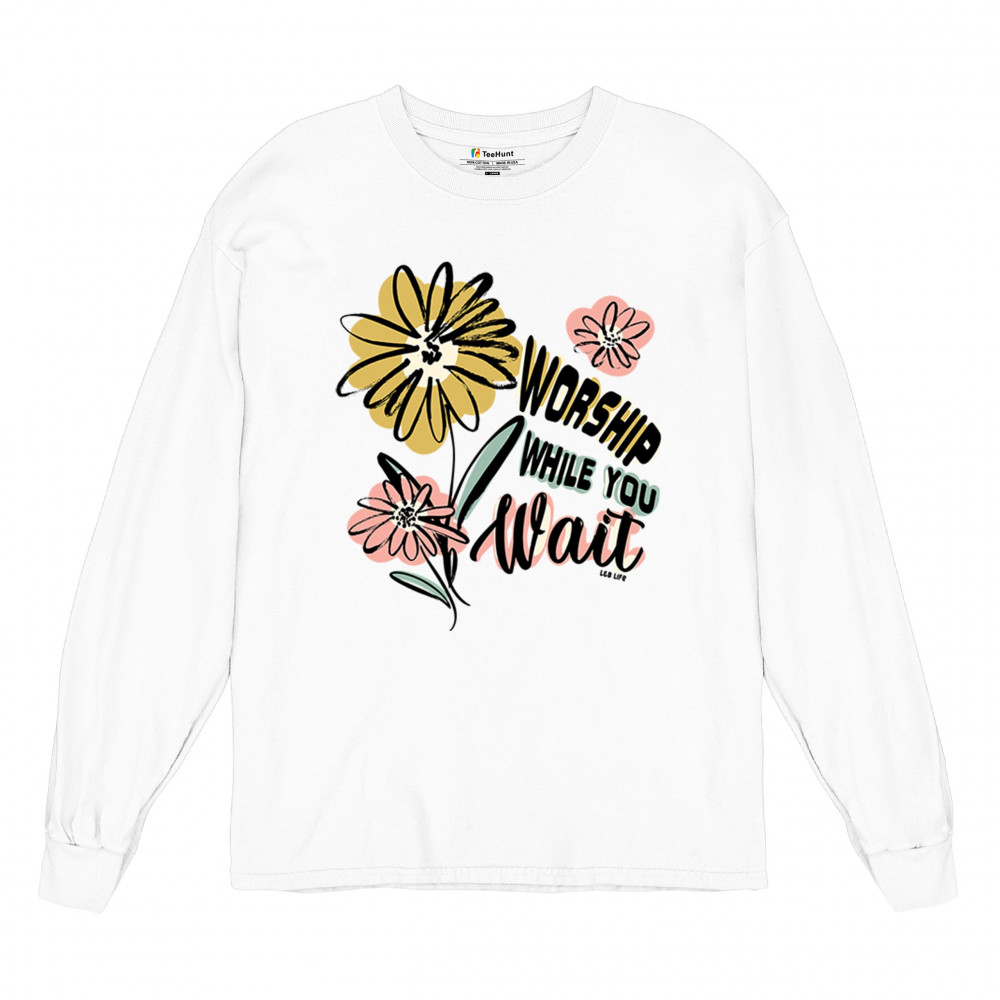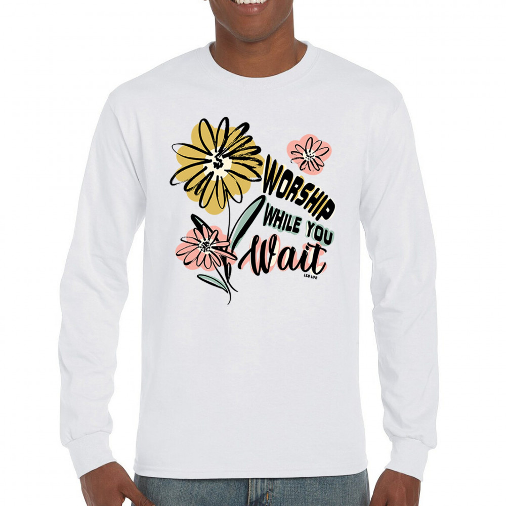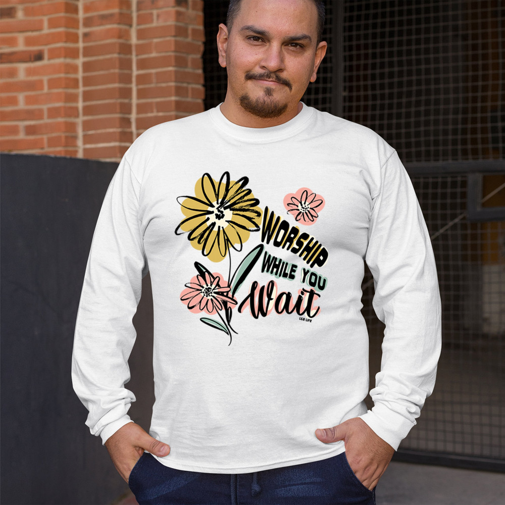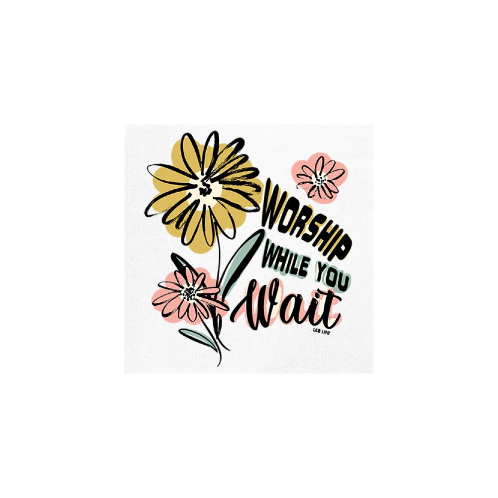 Find solace in our "Worship While You Wait" design, a harmonious blend of florals and faith for life’s quiet moments.