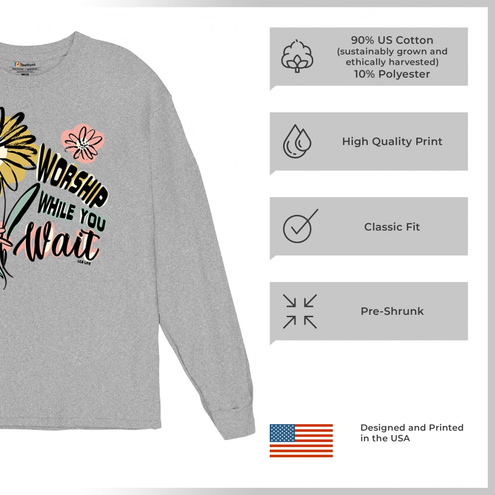 Find solace in our "Worship While You Wait" design, a harmonious blend of florals and faith for life’s quiet moments.