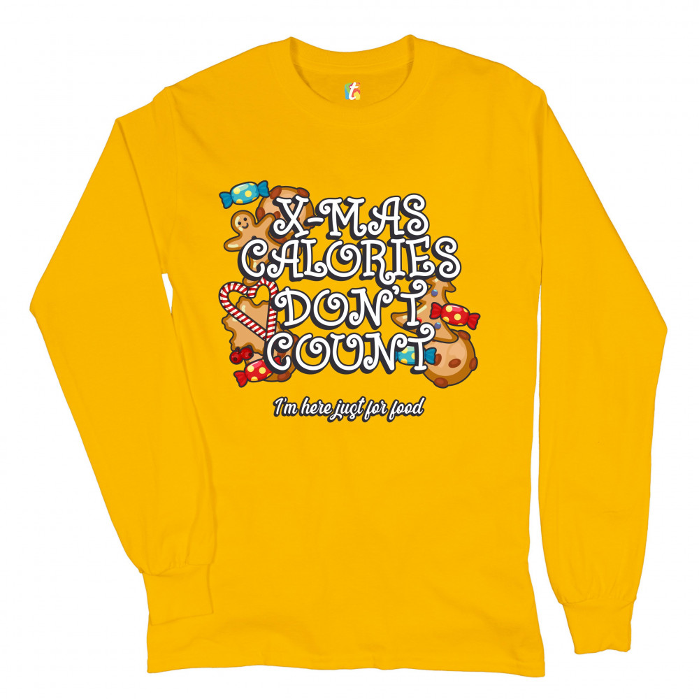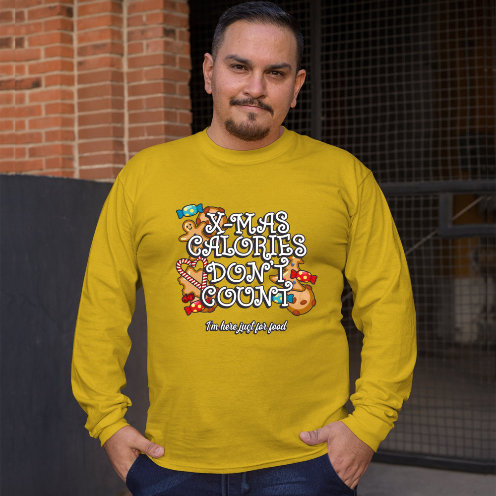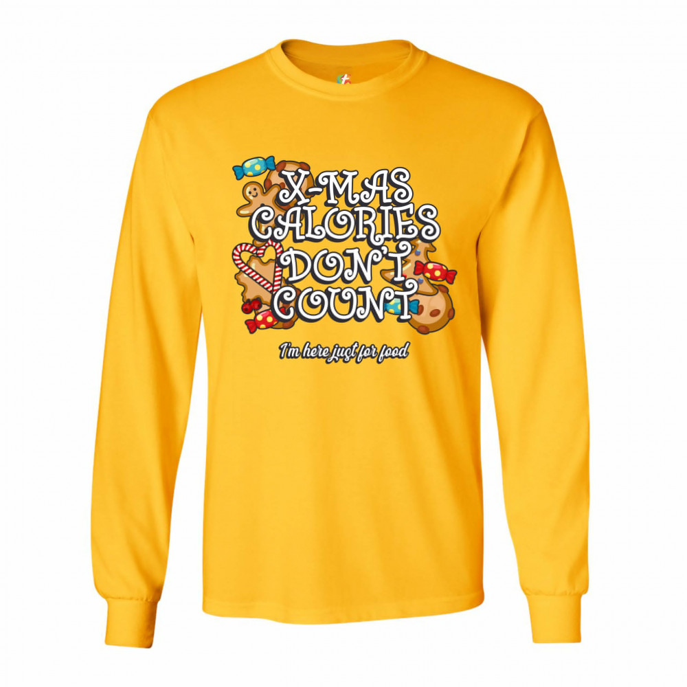 X-MAS CALORIES DON'T COUNT long sleeve t-shirt merry christmas naughty or nice yellow
