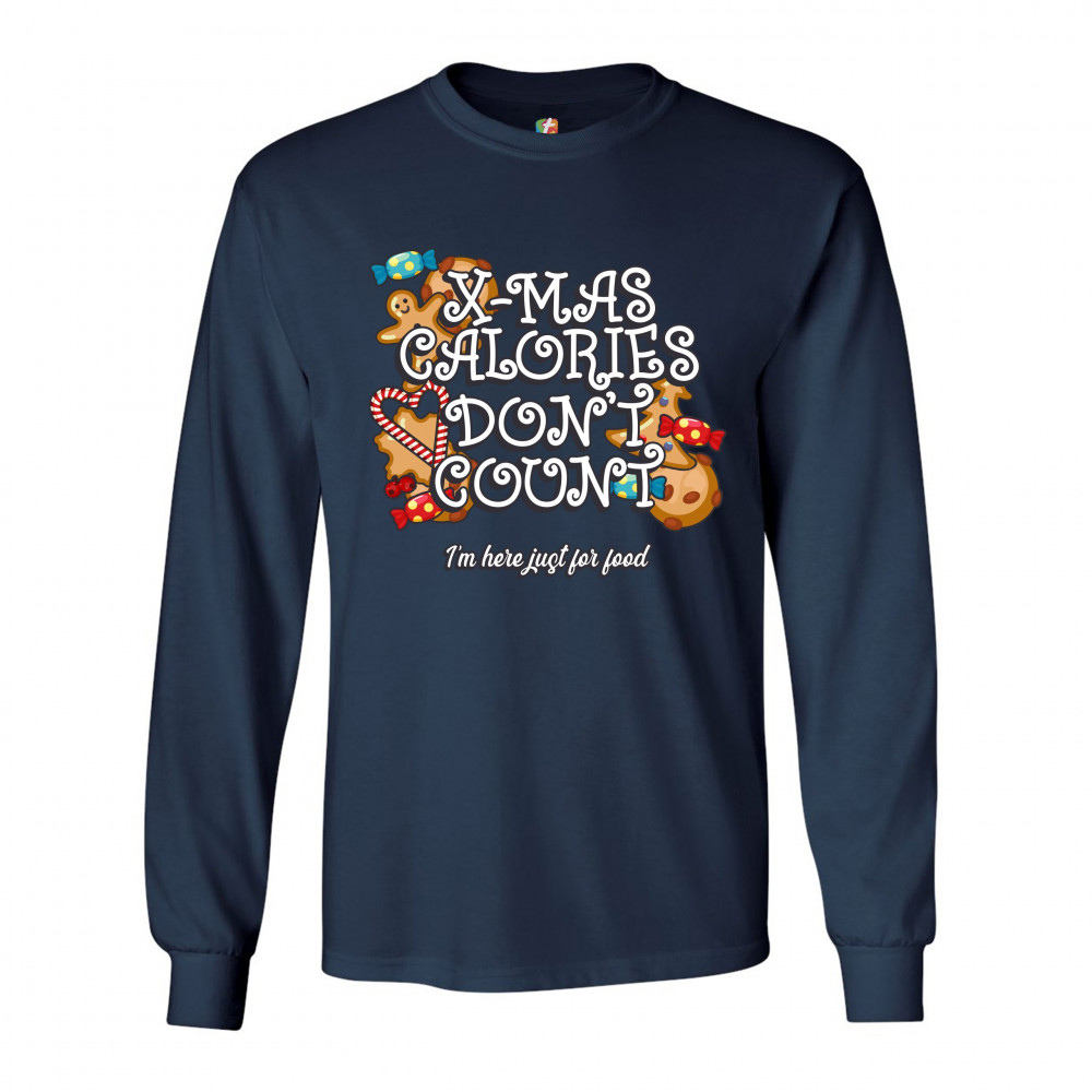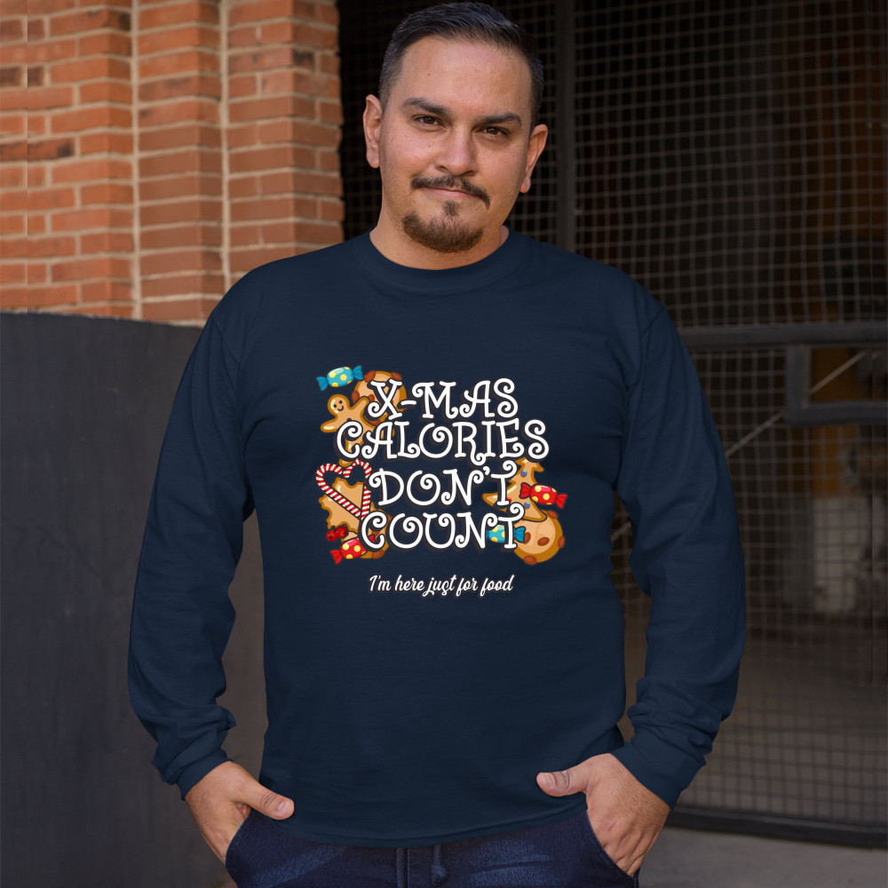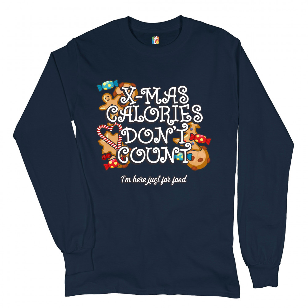 X-MAS CALORIES DON'T COUNT long sleeve t-shirt merry christmas naughty or nice navy blue