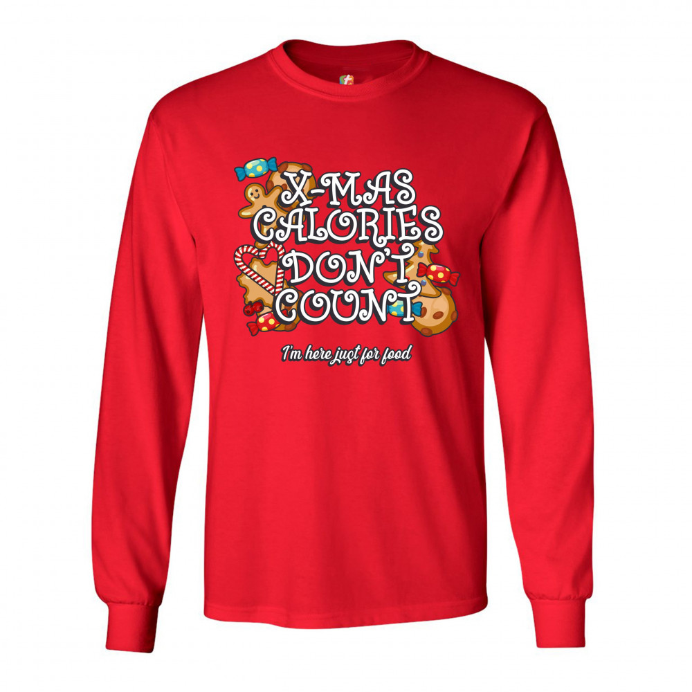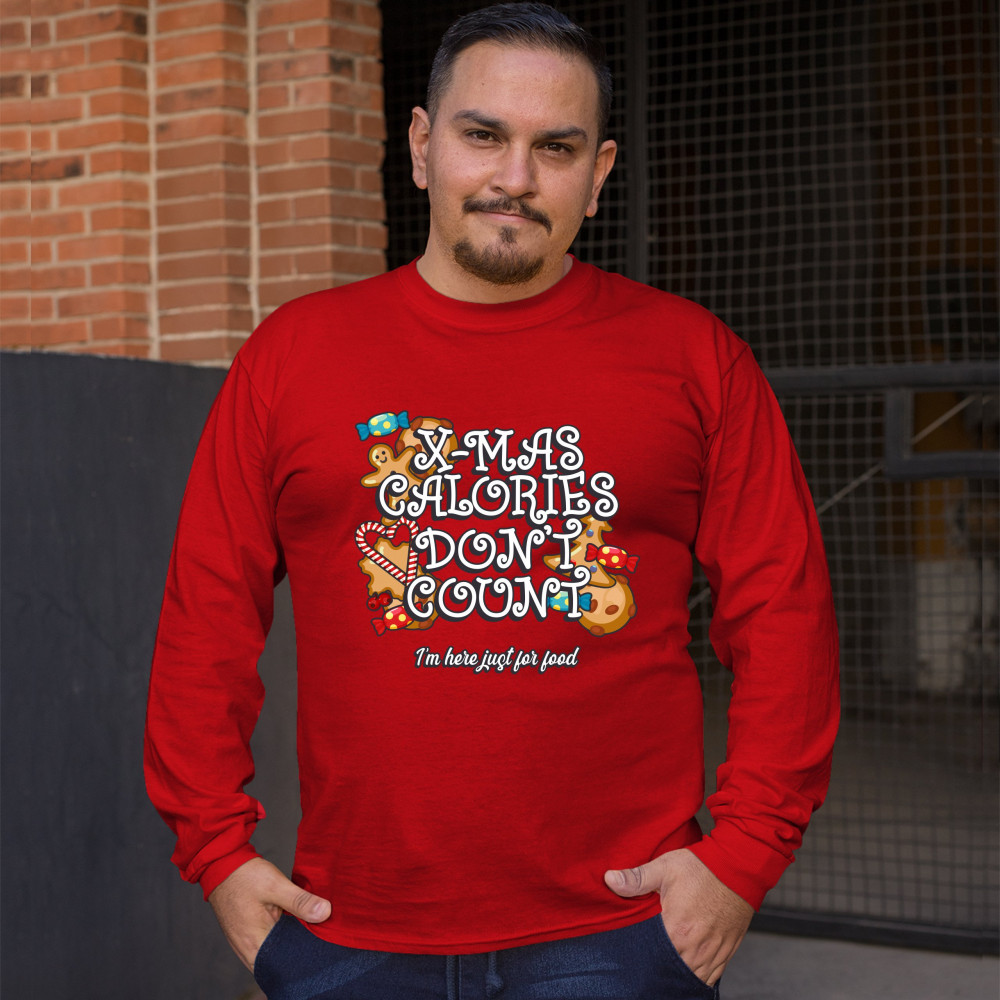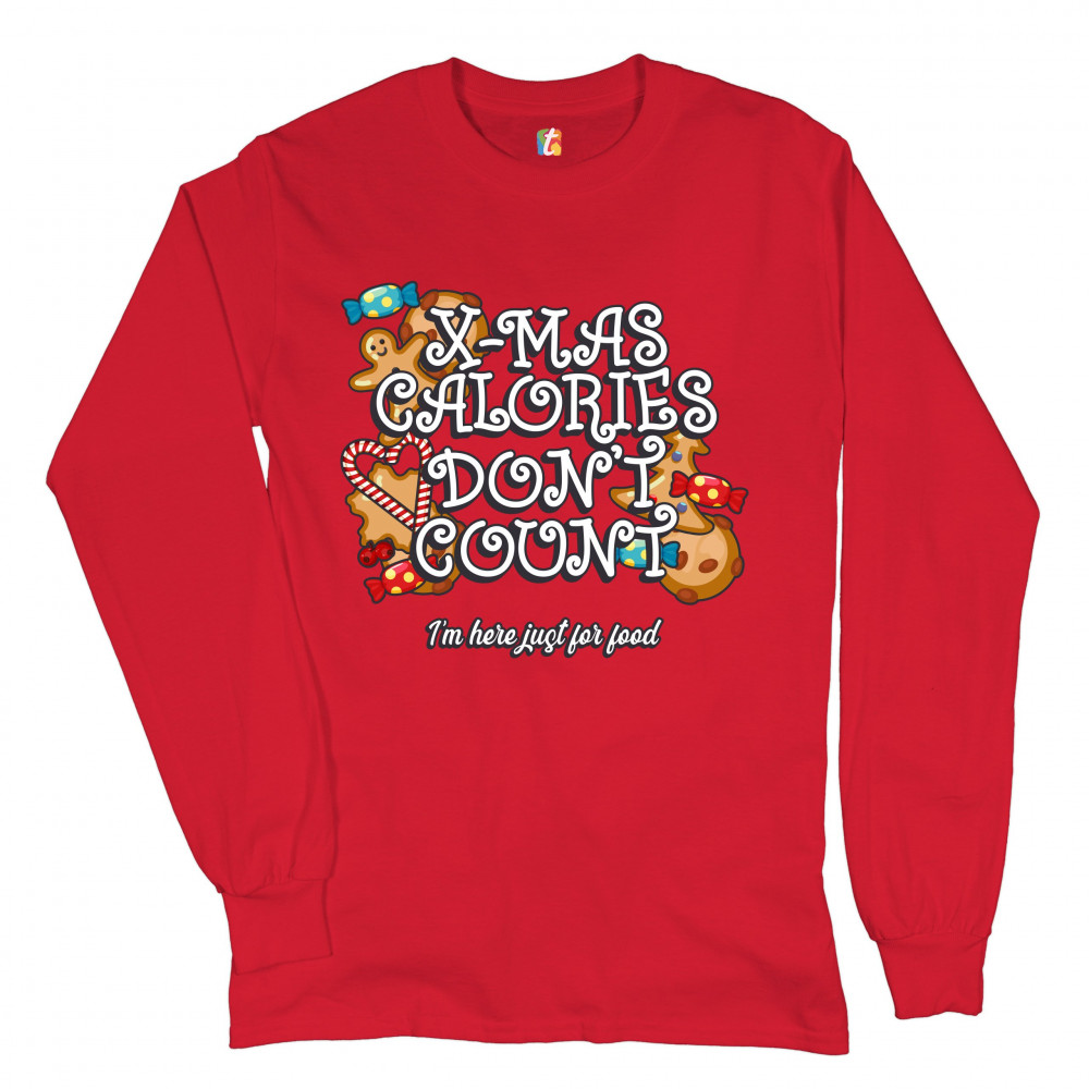 X-MAS CALORIES DON'T COUNT long sleeve t-shirt merry christmas naughty or nice red
