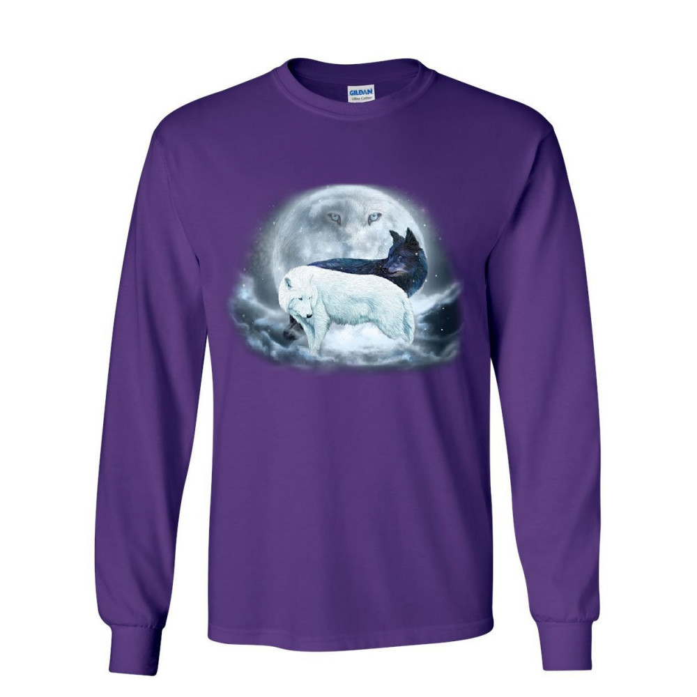 YIN & YANG WOLVES long sleeve t-shirt animals wildlife nature wolf pack moon tee purple