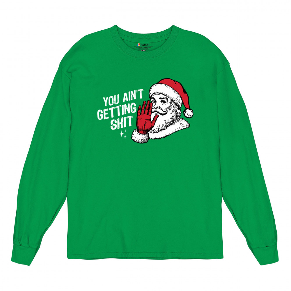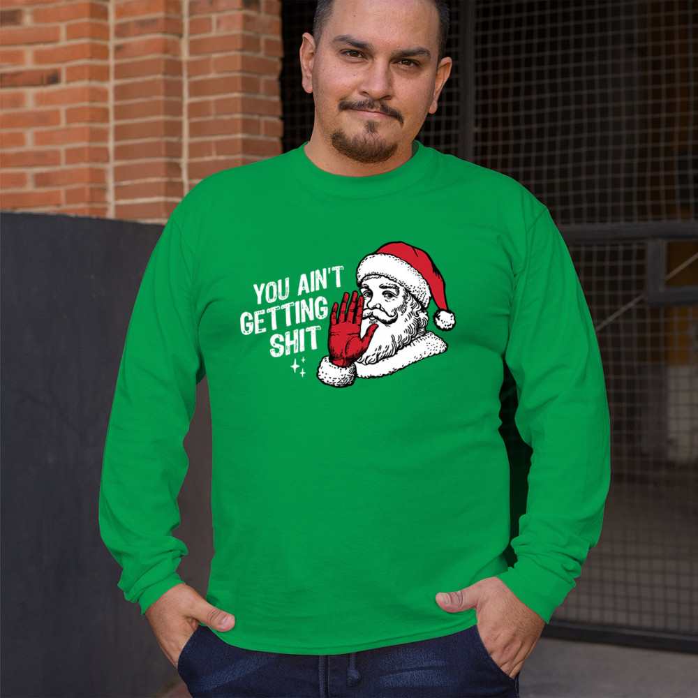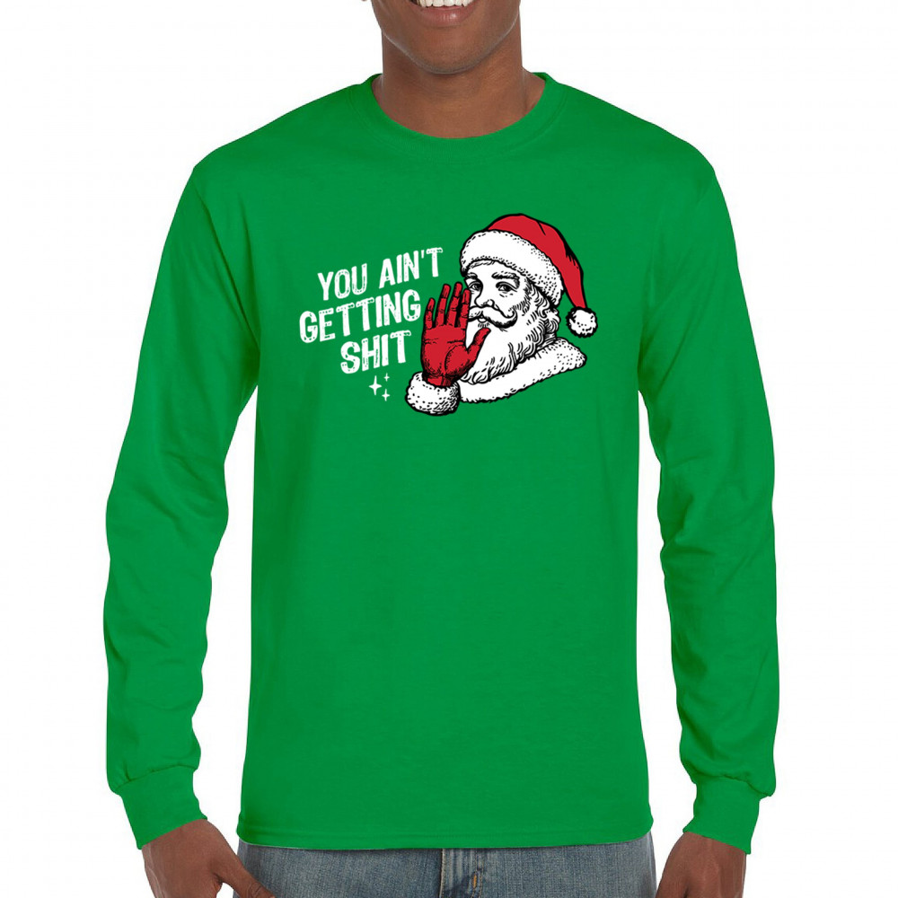 Funny Santa Christmas design with sarcastic Grumpy humor, Merry Xmas parody, Let It Snow style, Jingle Bells laughs, and Christmas tree vibes.