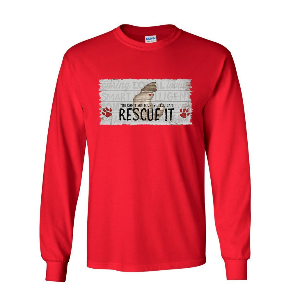 YOU CAN'T BUY LOVE but you can rescue it long sleeve t-shirt pet cat kitten tee red