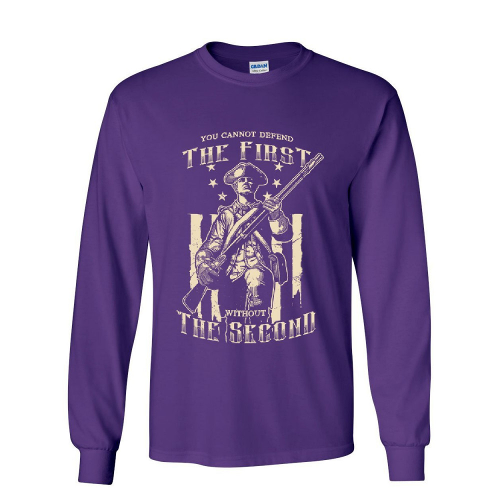 YOU CANNOT DEFEND THE FIRST WITHOUT THE SECOND you can't defend the first without the second long sleeve t-shirt militia 2a tee purple