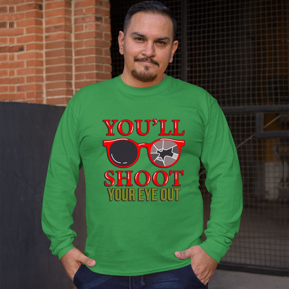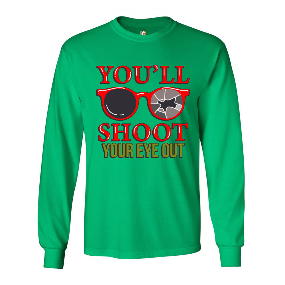 YOU'LL SHOOT YOUR EYE OUT long sleeve t-shirt funny christmas saying xmas green