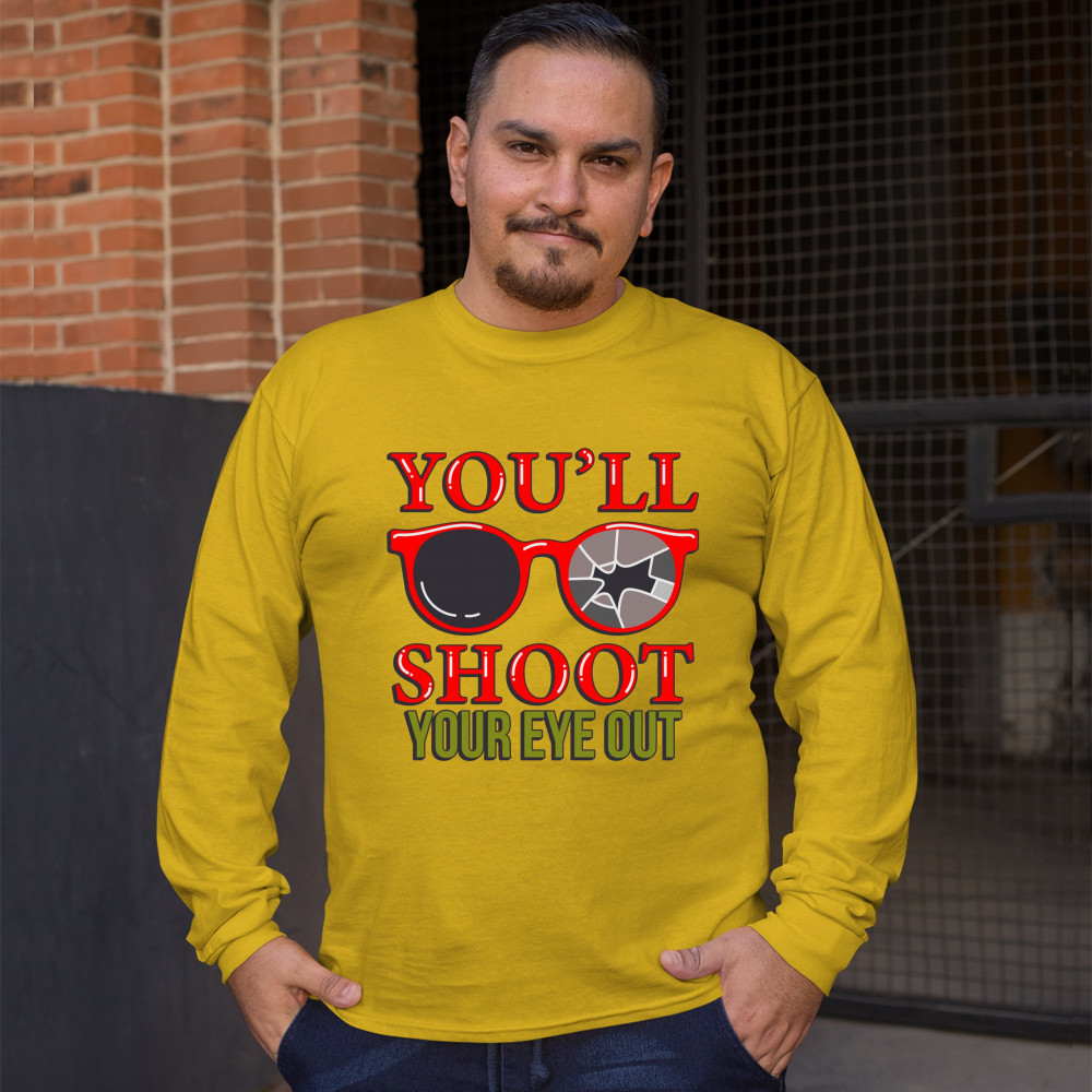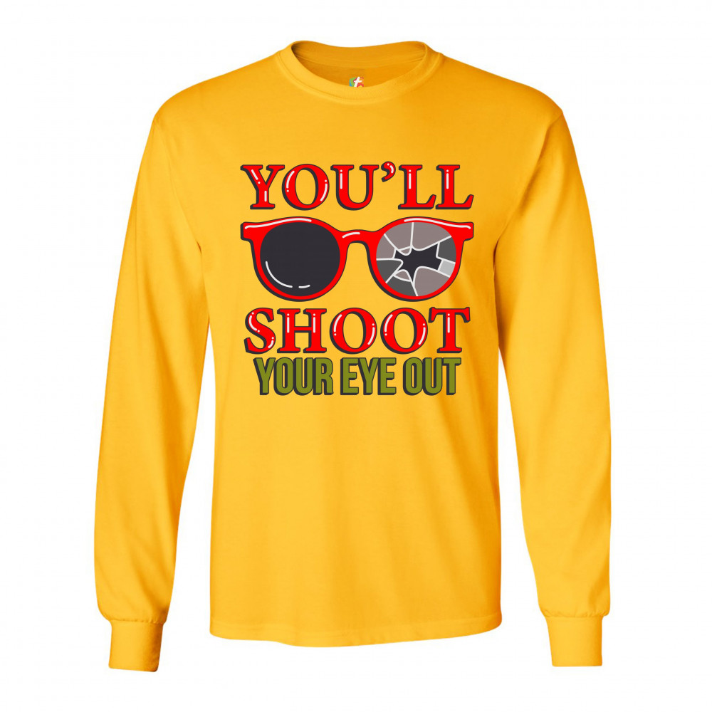 YOU'LL SHOOT YOUR EYE OUT long sleeve t-shirt funny christmas saying xmas yellow