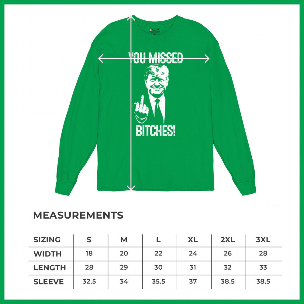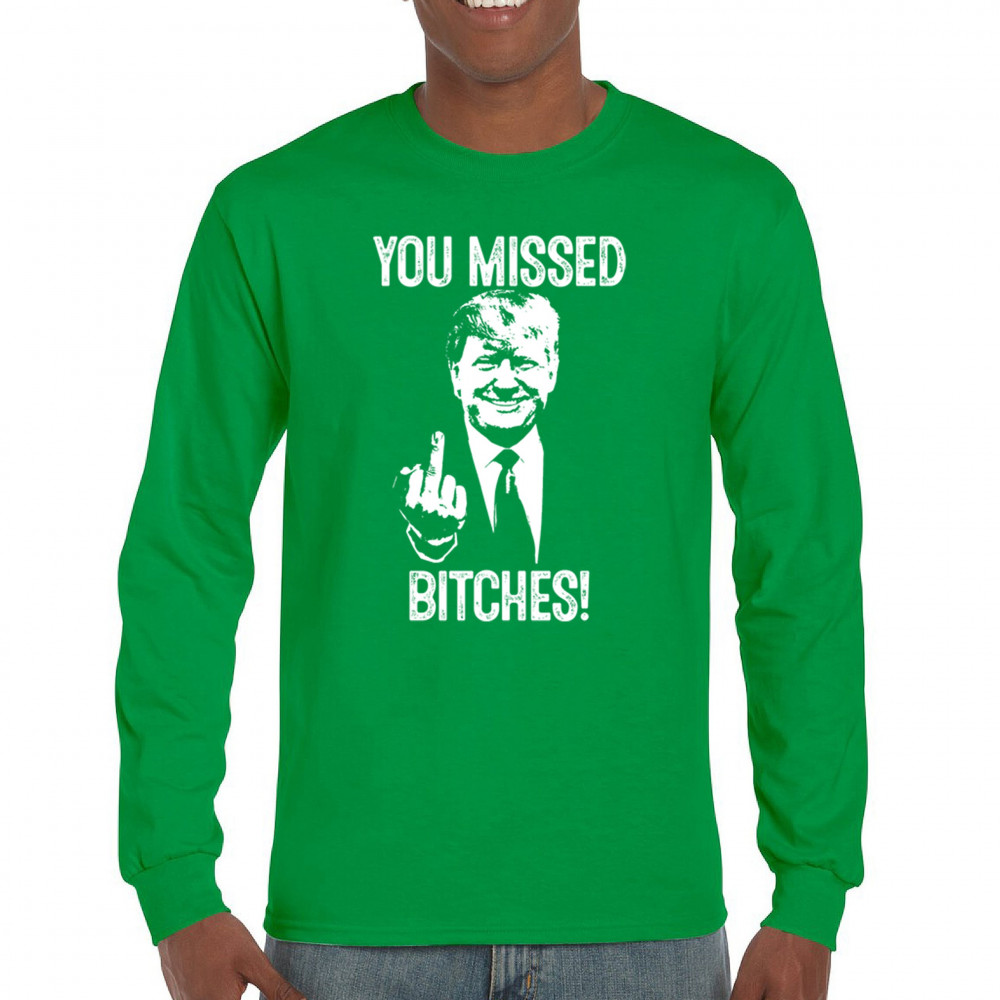 Commemorate Trump's resilience and determination with our bold "You Missed Bitches!" design. Show your support and patriotism.
