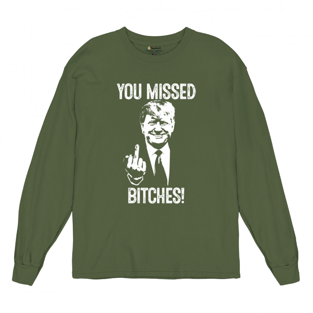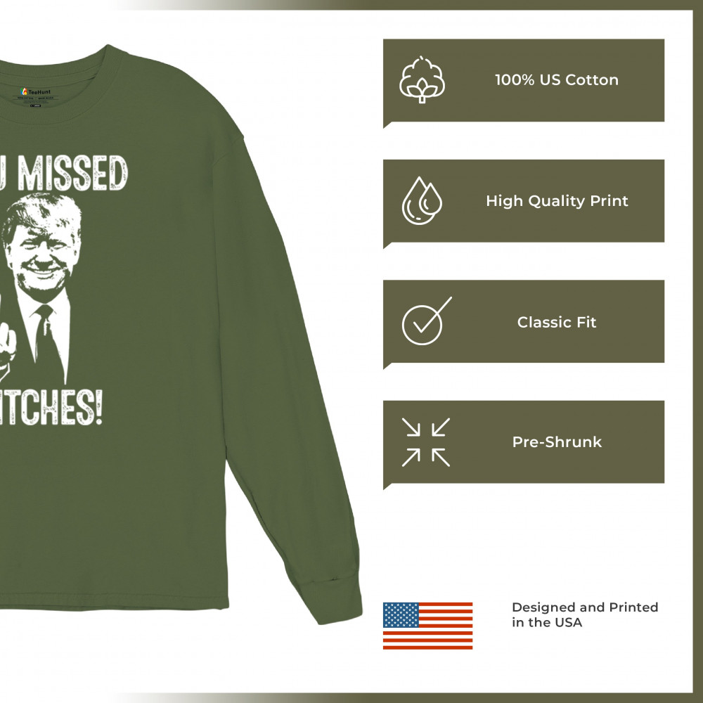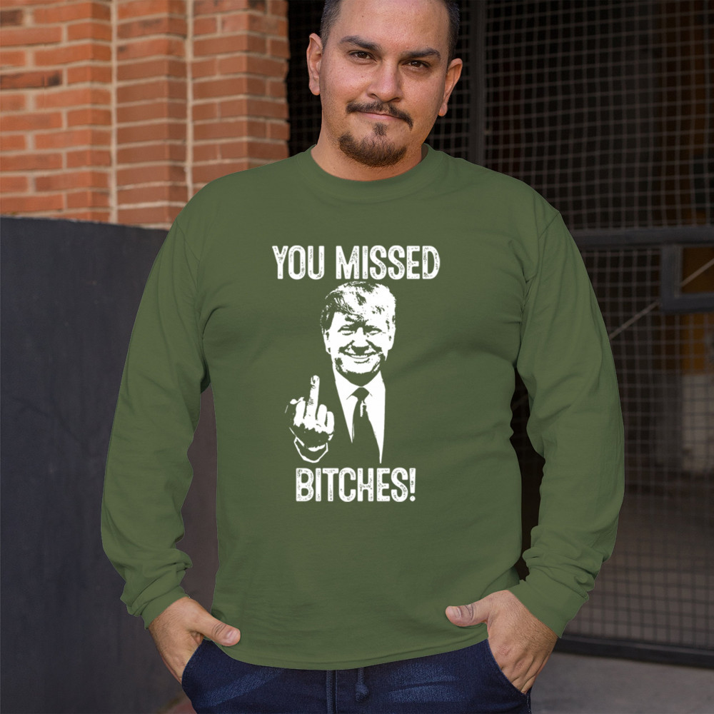 Commemorate Trump's resilience and determination with our bold "You Missed Bitches!" design. Show your support and patriotism.