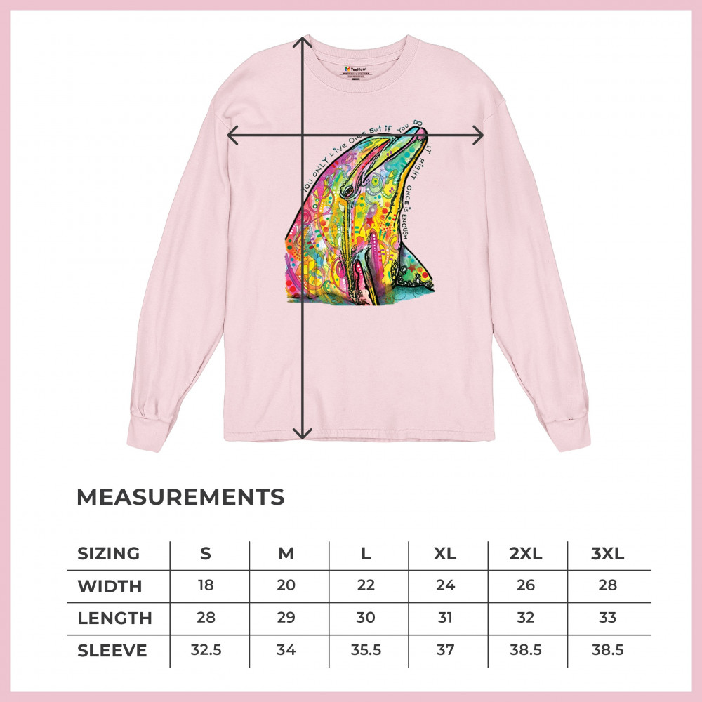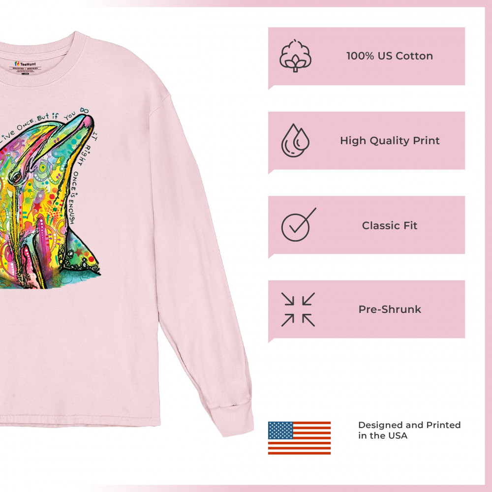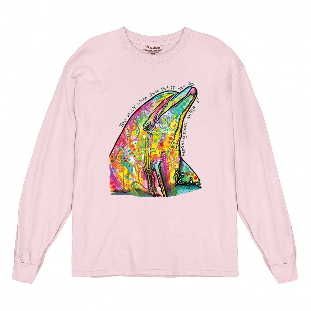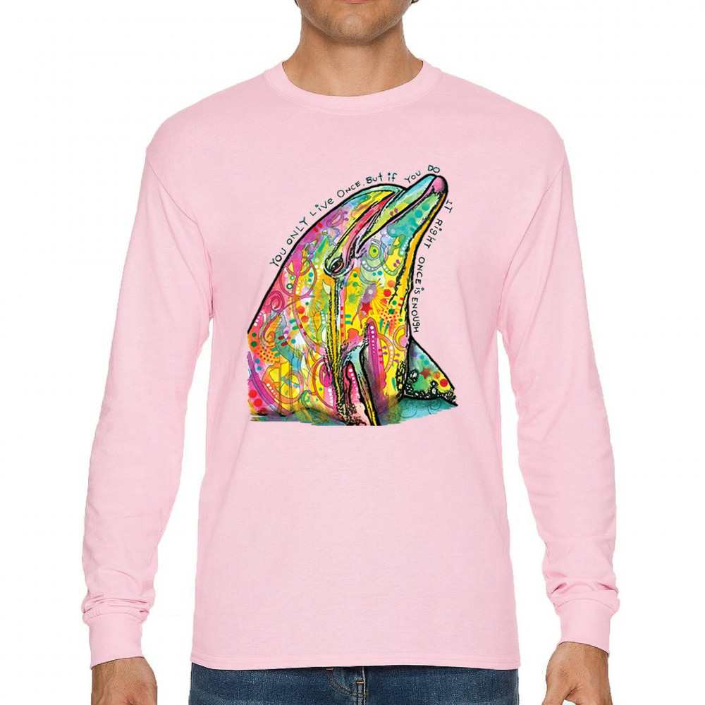 YOU ONLY LIVE ONCE long sleeve t-shirt cute neon dolphin dean russo yolo pink