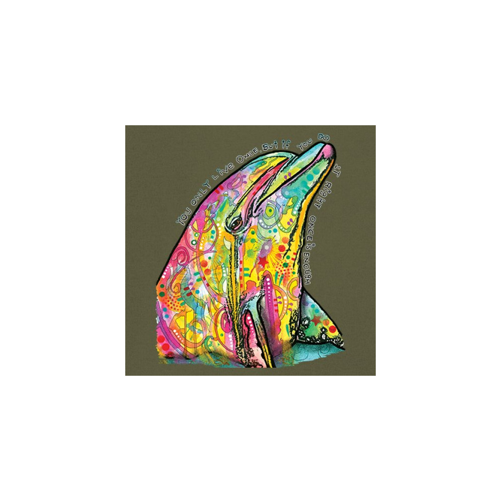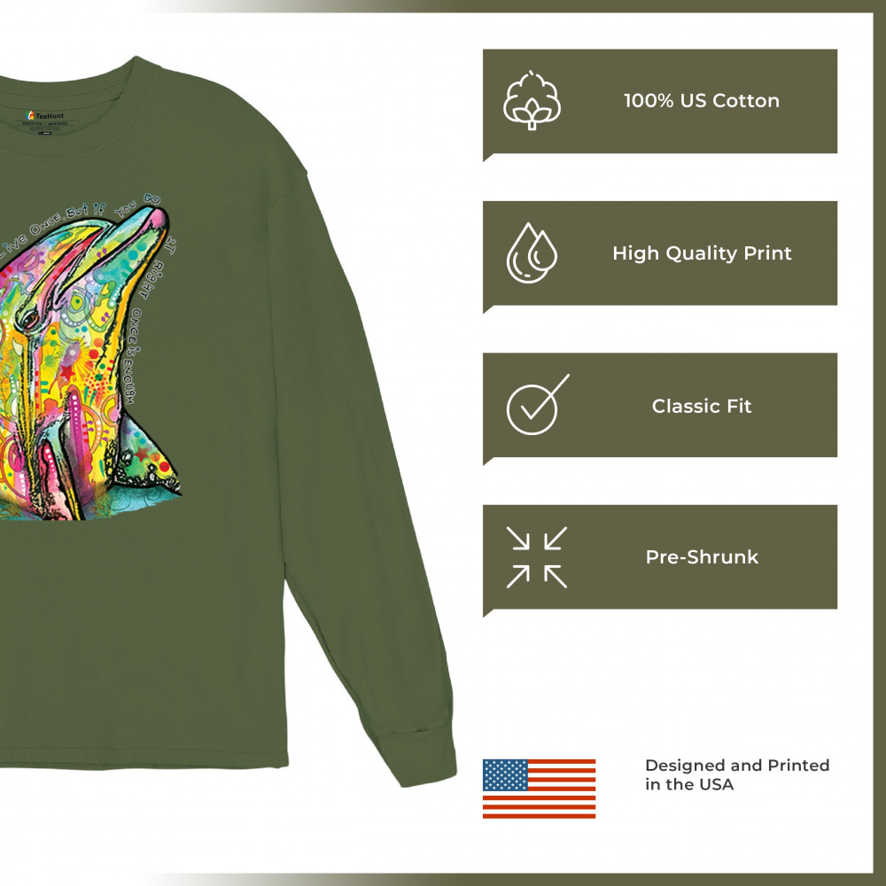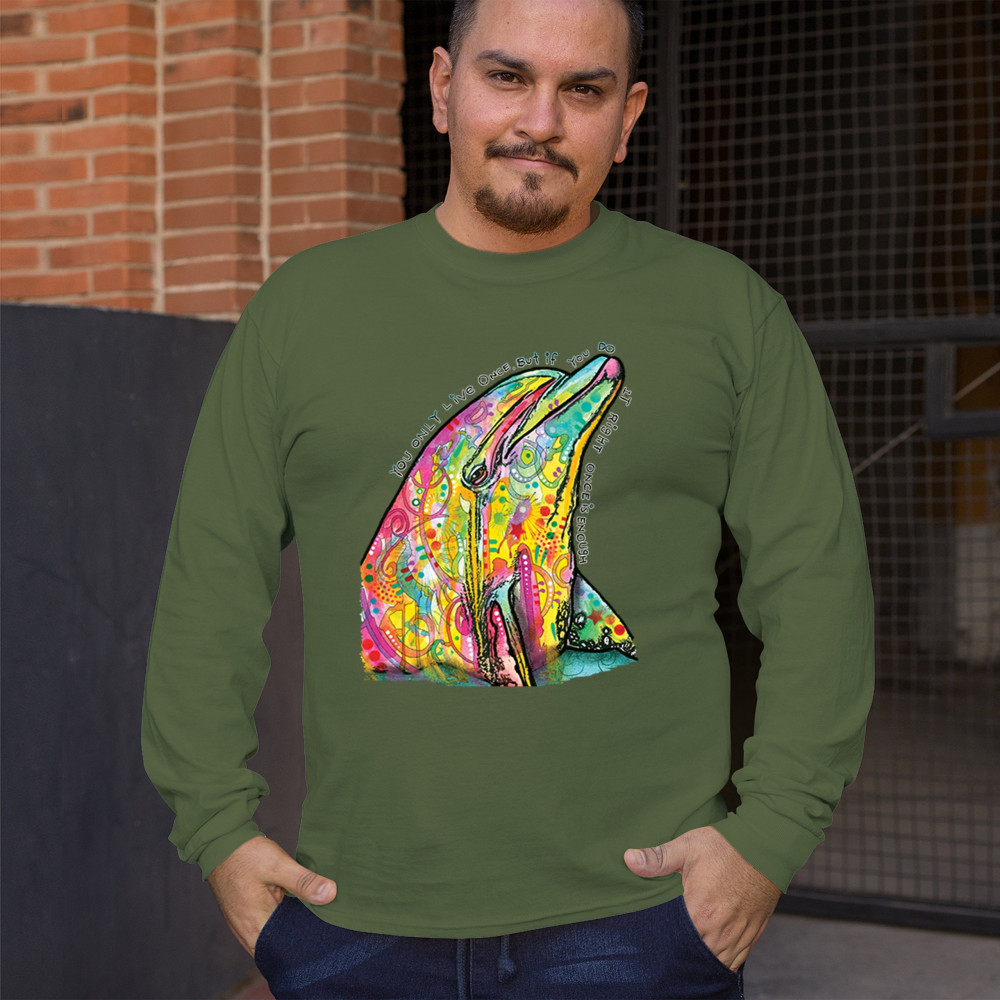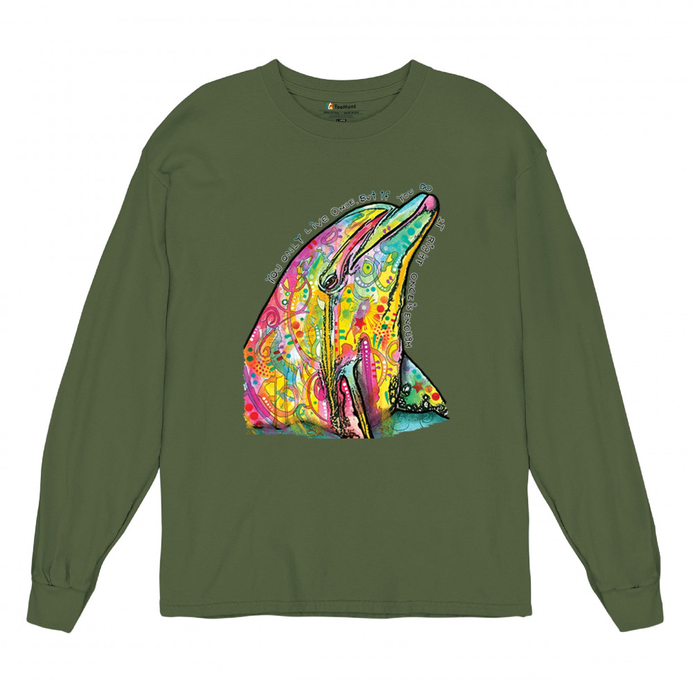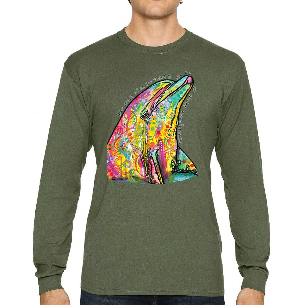 YOU ONLY LIVE ONCE long sleeve t-shirt cute neon dolphin dean russo yolo military green