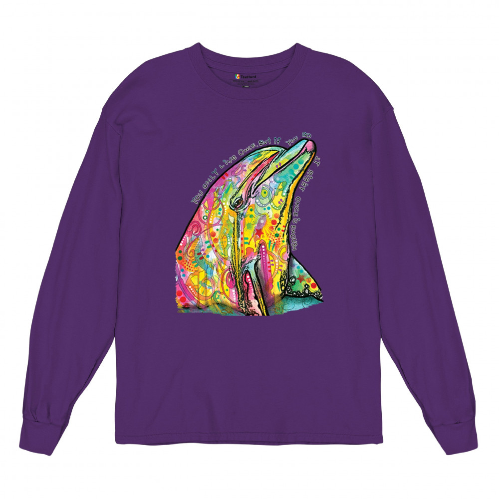 YOU ONLY LIVE ONCE long sleeve t-shirt cute neon dolphin dean russo yolo purple