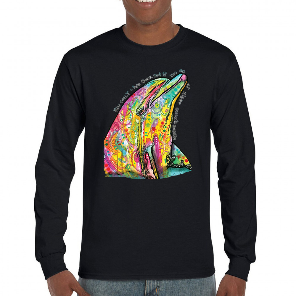 YOU ONLY LIVE ONCE long sleeve t-shirt cute neon dolphin dean russo yolo black