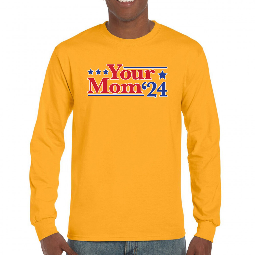 Show off your humor and style with the "Your Mom '24" design. Perfect for the 2024 election season, this design combines quality, comfort, and a playful political twist.