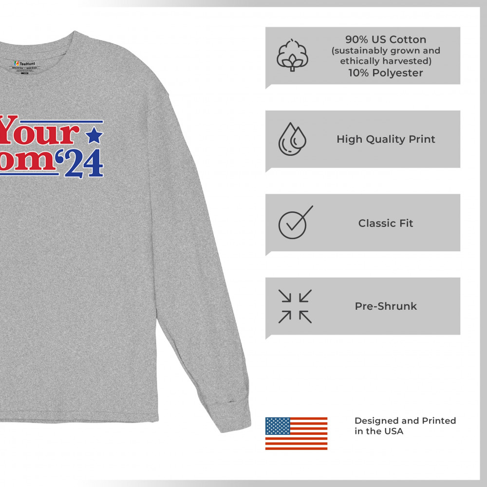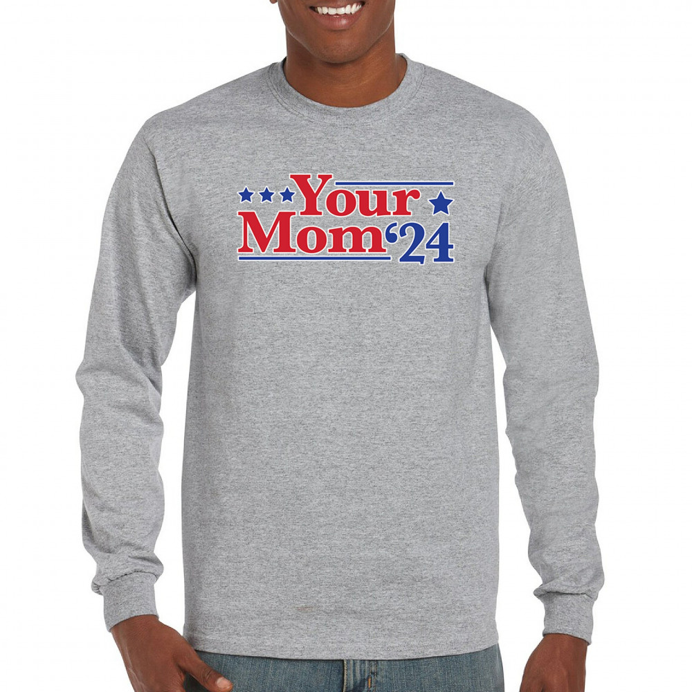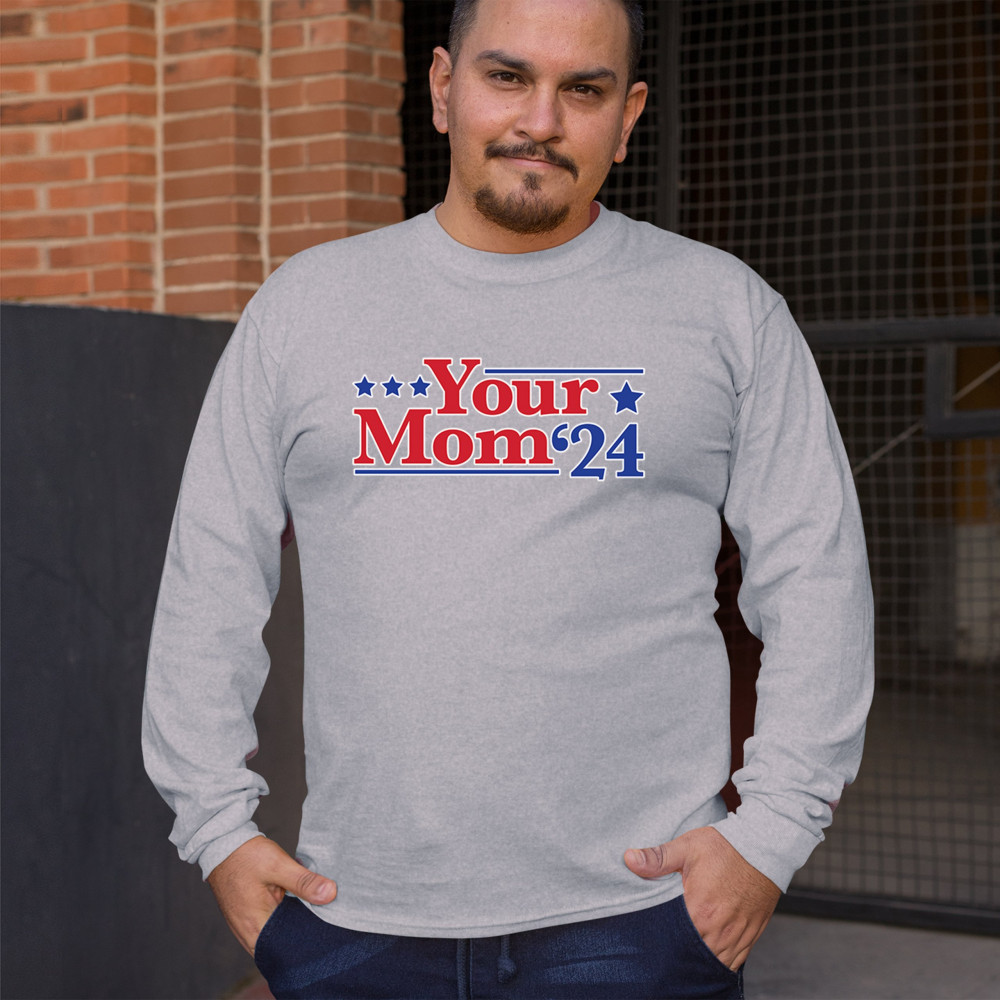 Show off your humor and style with the "Your Mom '24" design. Perfect for the 2024 election season, this design combines quality, comfort, and a playful political twist.