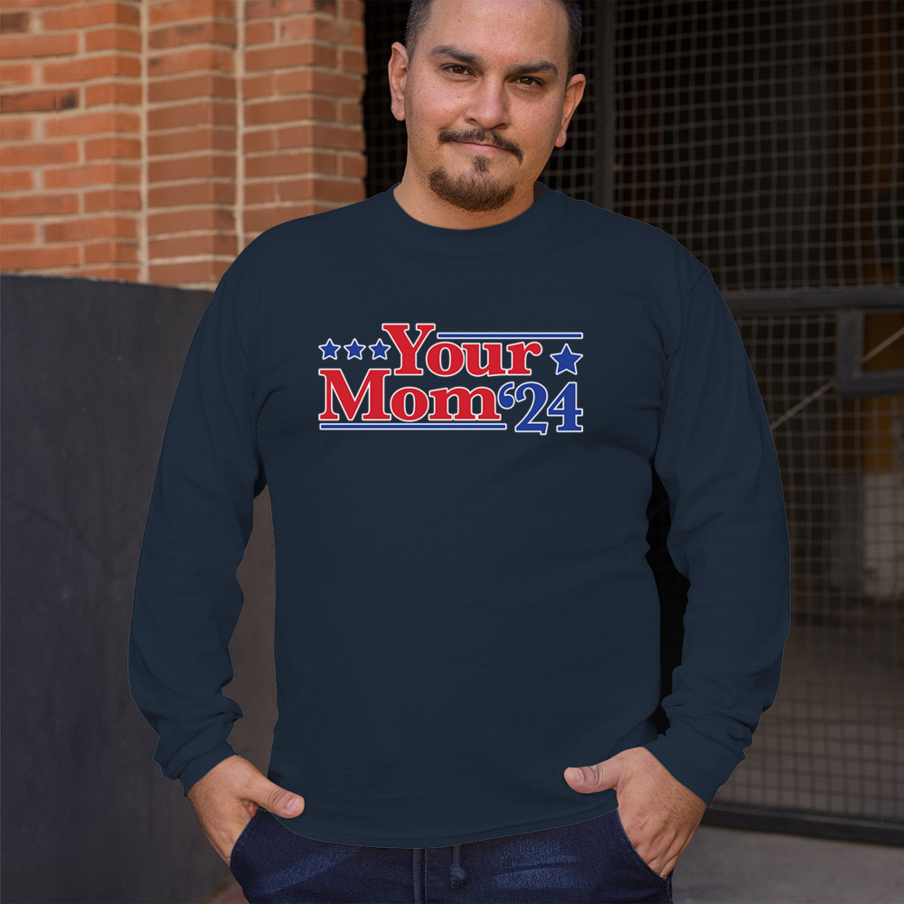 Show off your humor and style with the "Your Mom '24" design. Perfect for the 2024 election season, this design combines quality, comfort, and a playful political twist.