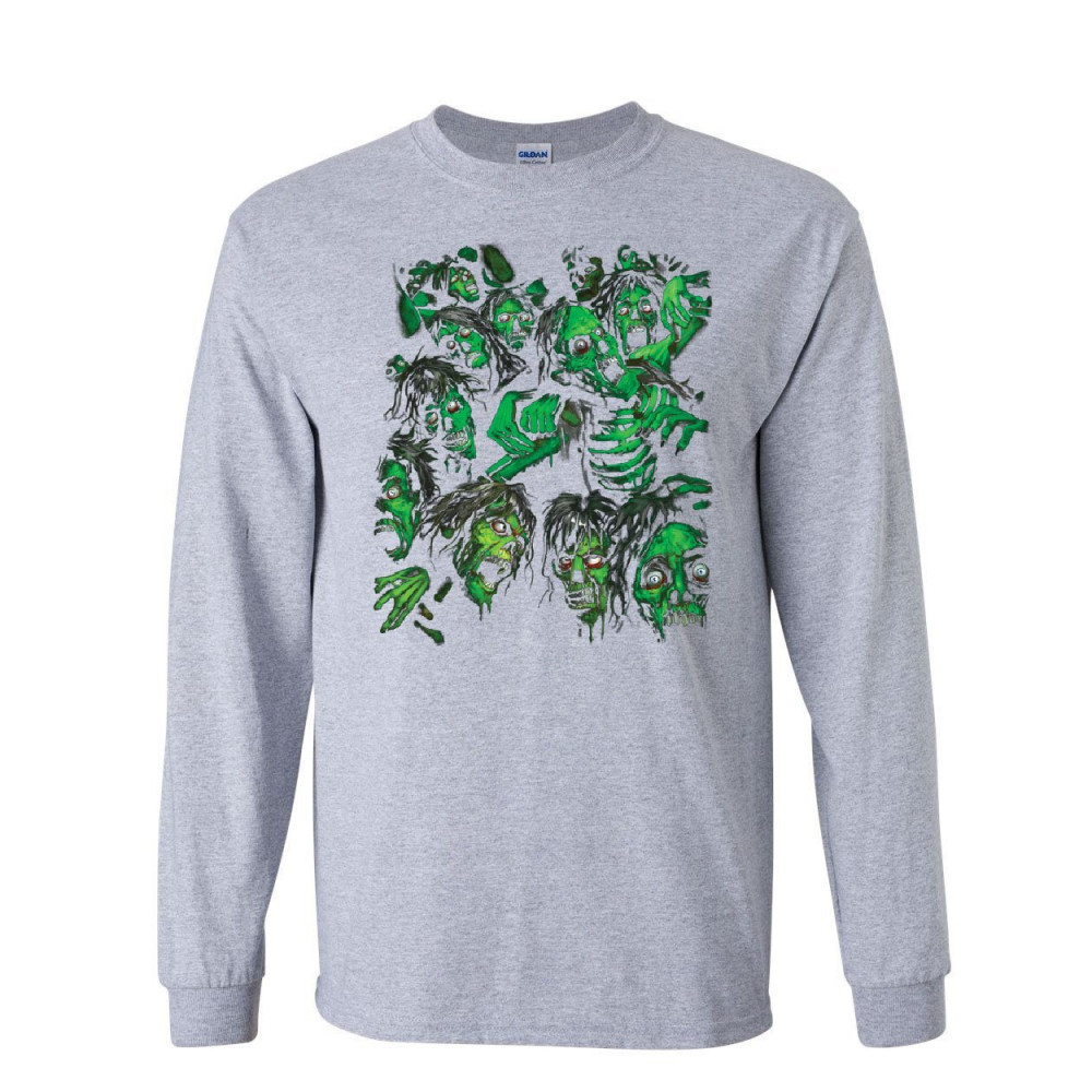 ZOMBIE PILE long sleeve t-shirt undead rising zombie apocalypse outbreak tee gray