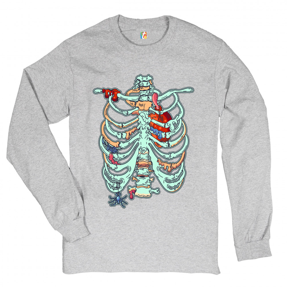 ZOMBIE RIB CAGE long sleeve t-shirt all hallows' eve spooky halloween skeleton gray