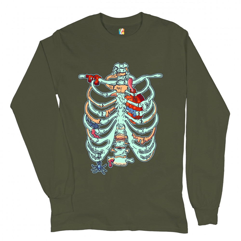 ZOMBIE RIB CAGE long sleeve t-shirt all hallows' eve spooky halloween skeleton military green