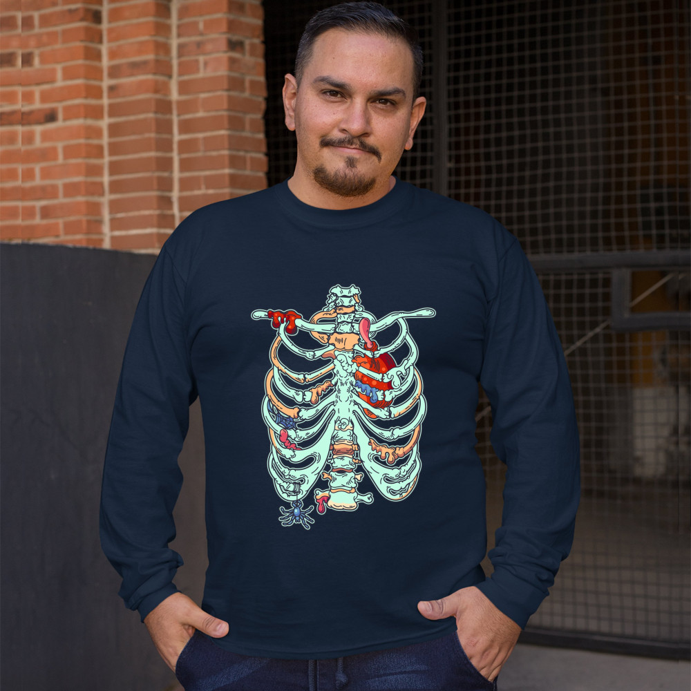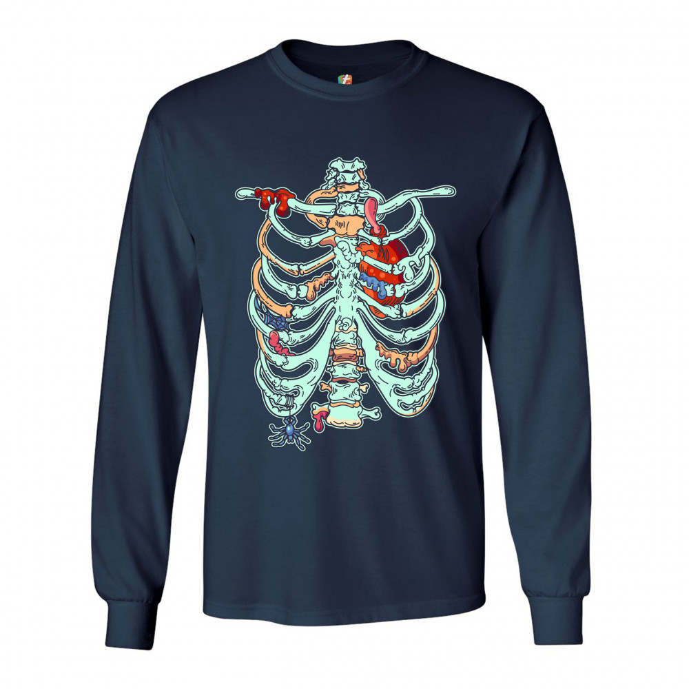 ZOMBIE RIB CAGE long sleeve t-shirt all hallows' eve spooky halloween skeleton navy blue