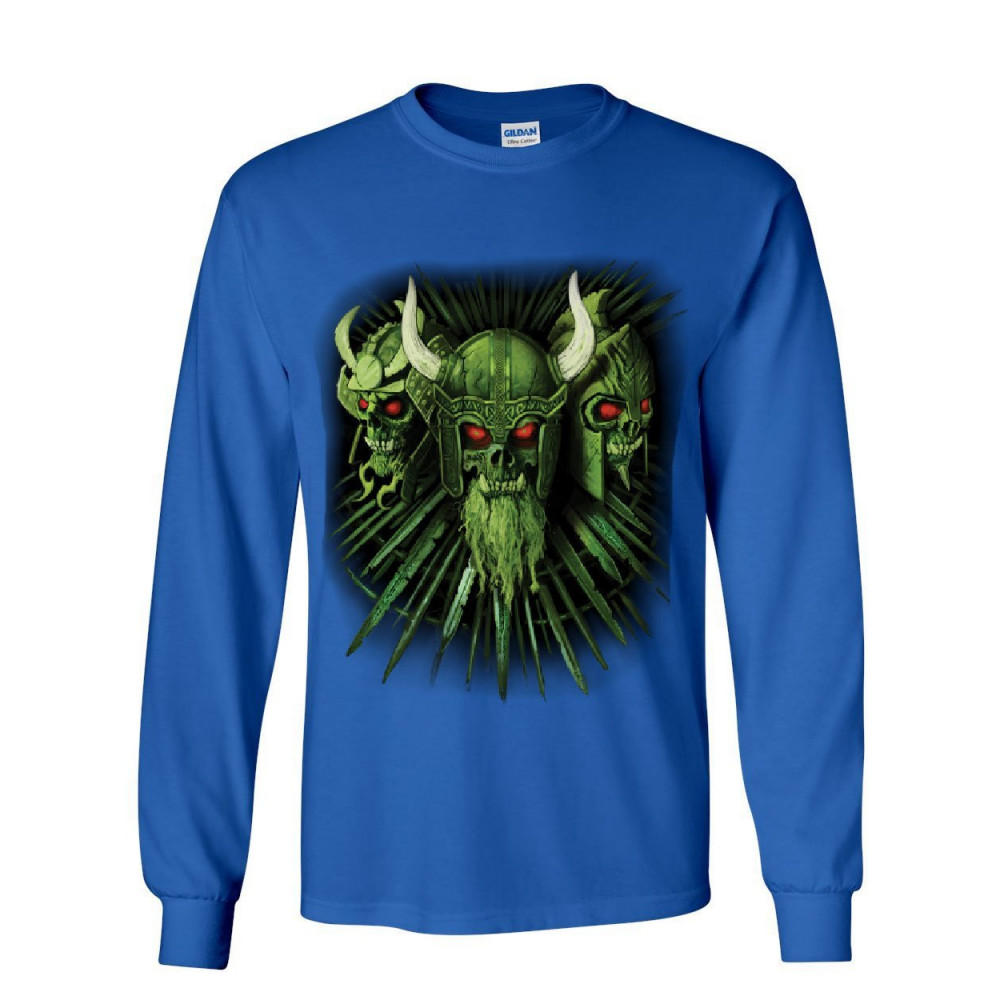 ZOMBIE WARRIORS' SKULLS zombie warrior skulls long sleeve t-shirt viking samurai gladiator undead tee royal blue