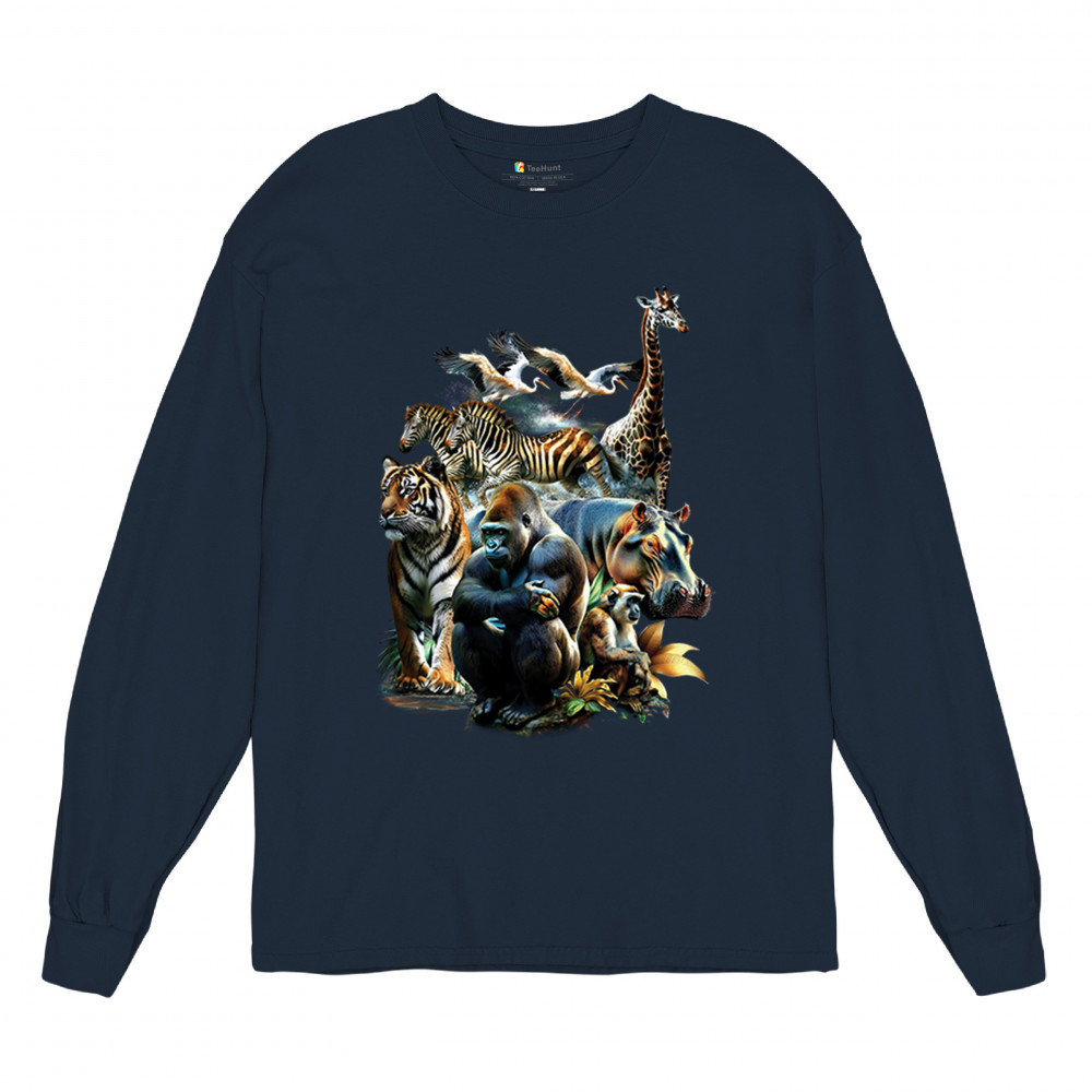 Packed with fierce energy and vibrant color, this wildlife design features a jungle coalition of gorilla, tiger, monkey, zebra, giraffe, hippo, and birds. A powerful tribute to animal beauty, biodiversity, and nature's harmony. Perfect for jungle tour enthusiasts, zoo visitors, or anyone passionate about wild conservation and stunning creature art.
