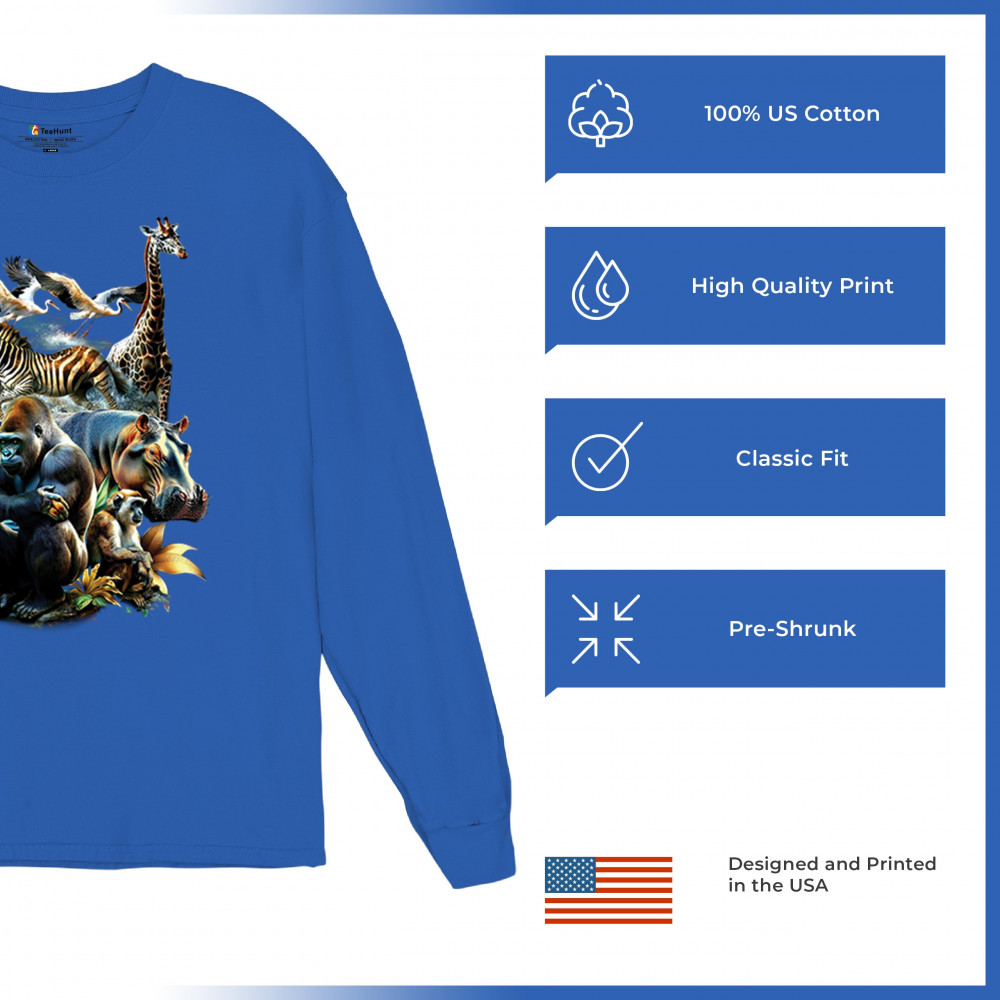 Packed with fierce energy and vibrant color, this wildlife design features a jungle coalition of gorilla, tiger, monkey, zebra, giraffe, hippo, and birds. A powerful tribute to animal beauty, biodiversity, and nature's harmony. Perfect for jungle tour enthusiasts, zoo visitors, or anyone passionate about wild conservation and stunning creature art.