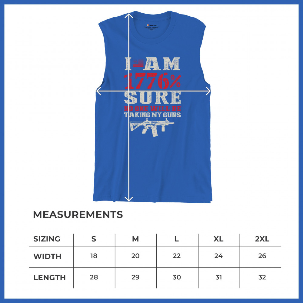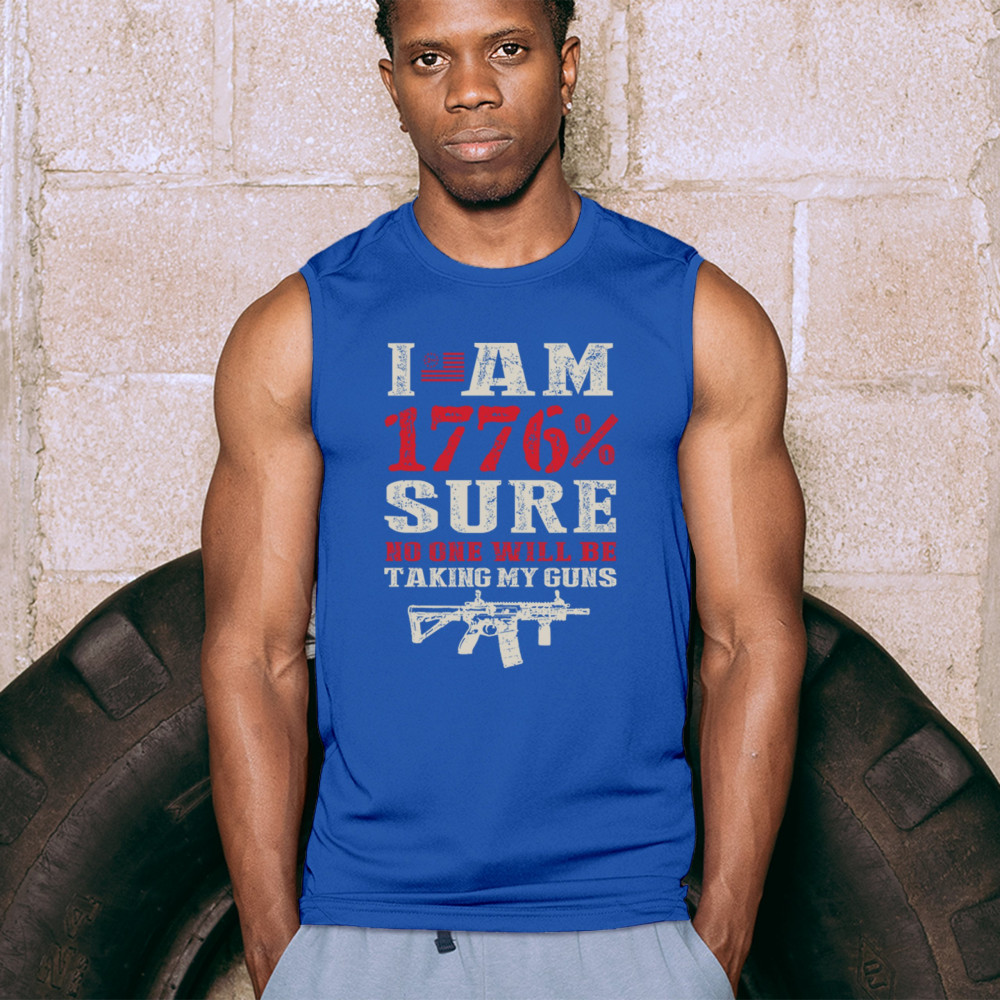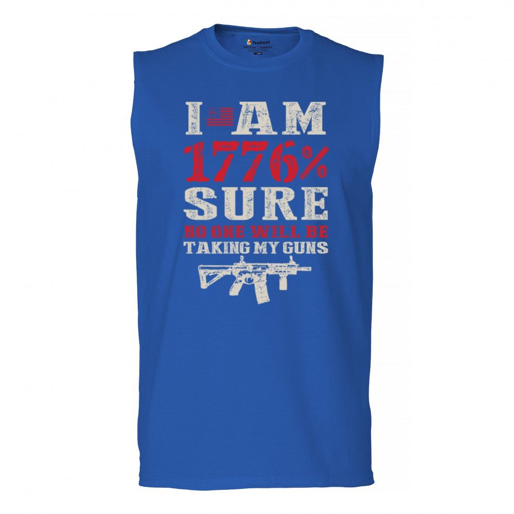 This eye-catching design shouts American pride with its 1776% certainty and pro-gun message. A distressed rifle graphic pairs with bold lettering and patriotic red, white, and blue styling. Perfect for gun owners, liberty advocates, and veterans who take their constitutional rights seriously. A true celebration of freedom and firepower.