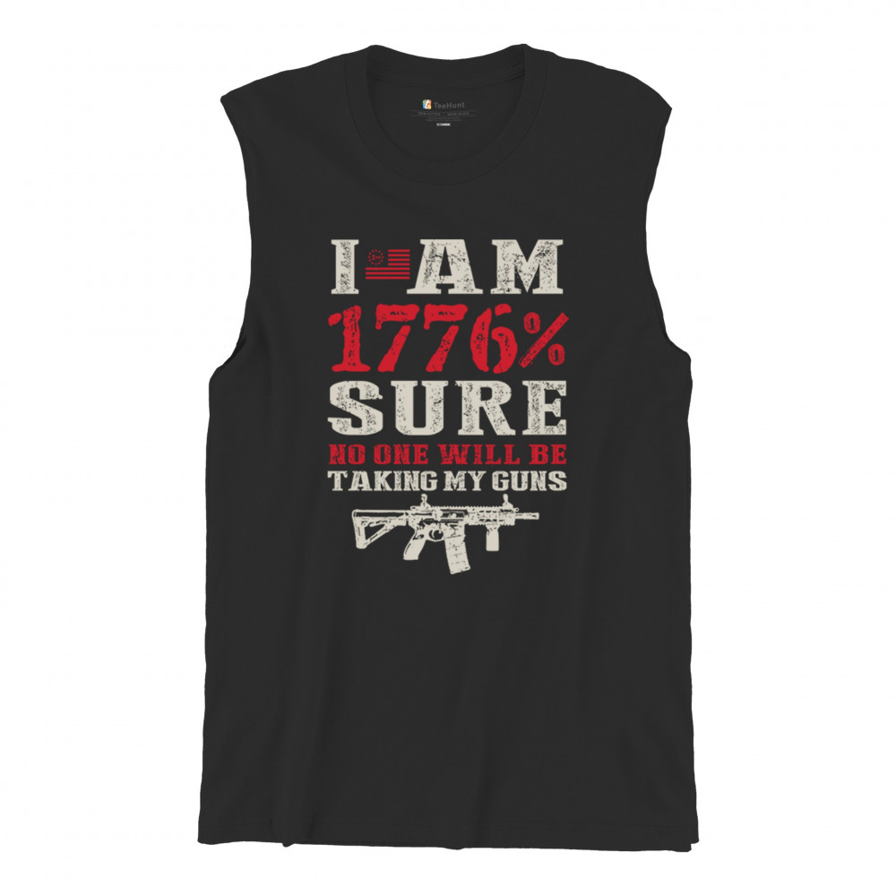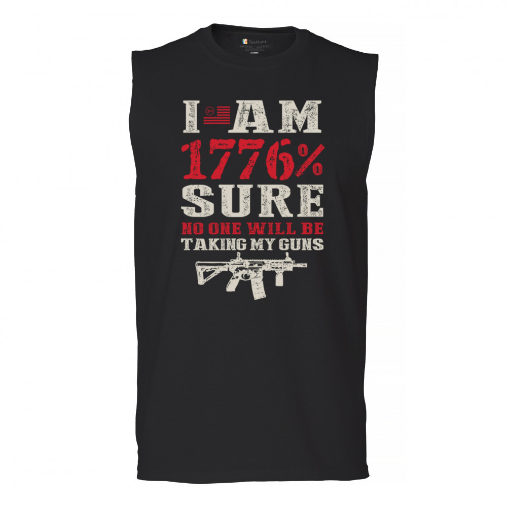 This eye-catching design shouts American pride with its 1776% certainty and pro-gun message. A distressed rifle graphic pairs with bold lettering and patriotic red, white, and blue styling. Perfect for gun owners, liberty advocates, and veterans who take their constitutional rights seriously. A true celebration of freedom and firepower.
