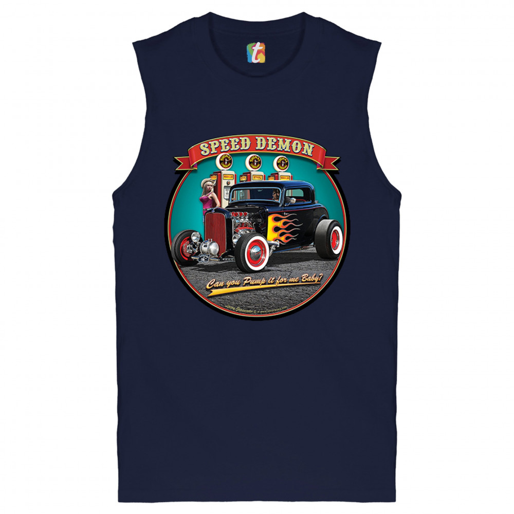 1932 DEUCE SPEED DEMON muscle shirt hot rod muscle car drag racing men's navy blue