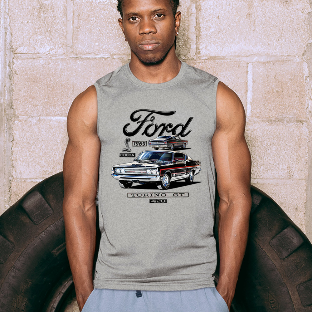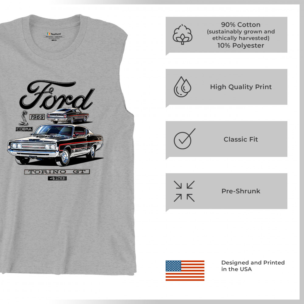 1969 Ford Torino GT Cobra design with racing stripes and Cobra badge—perfect for muscle car fans, Ford collectors, and show displays.
