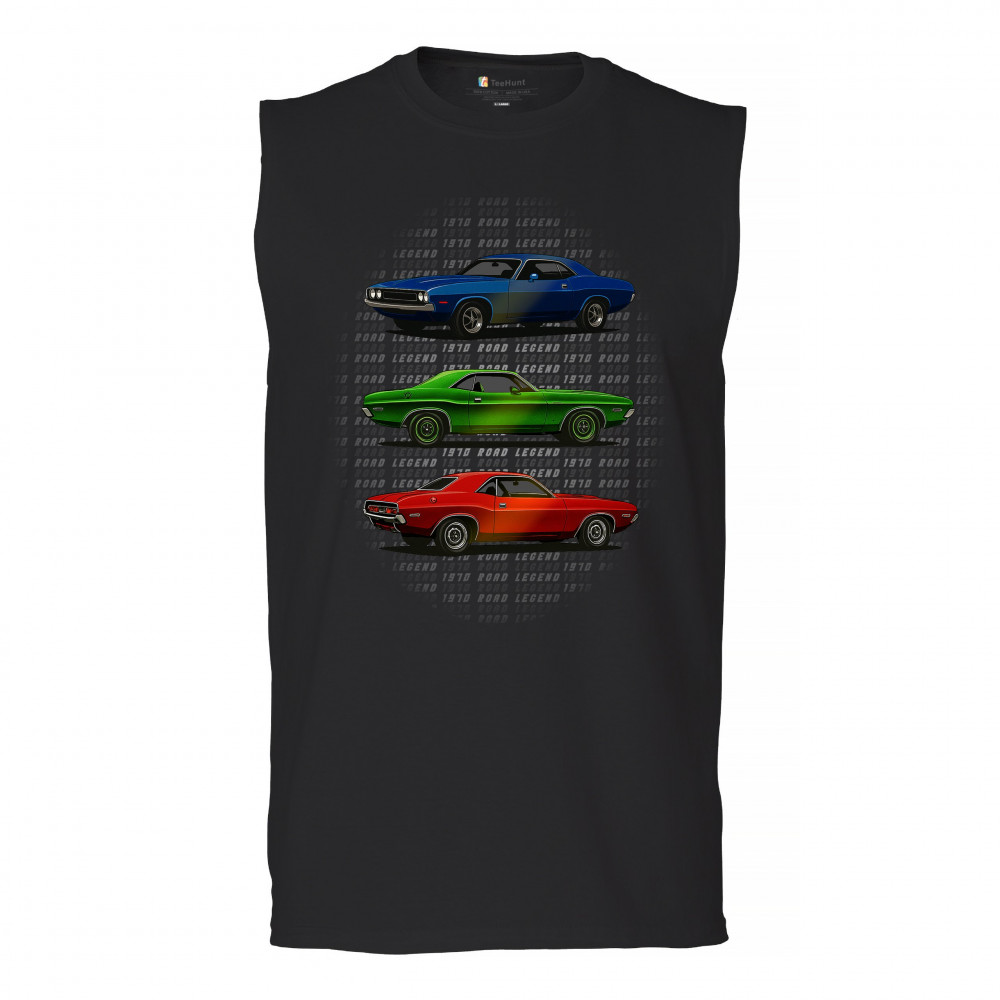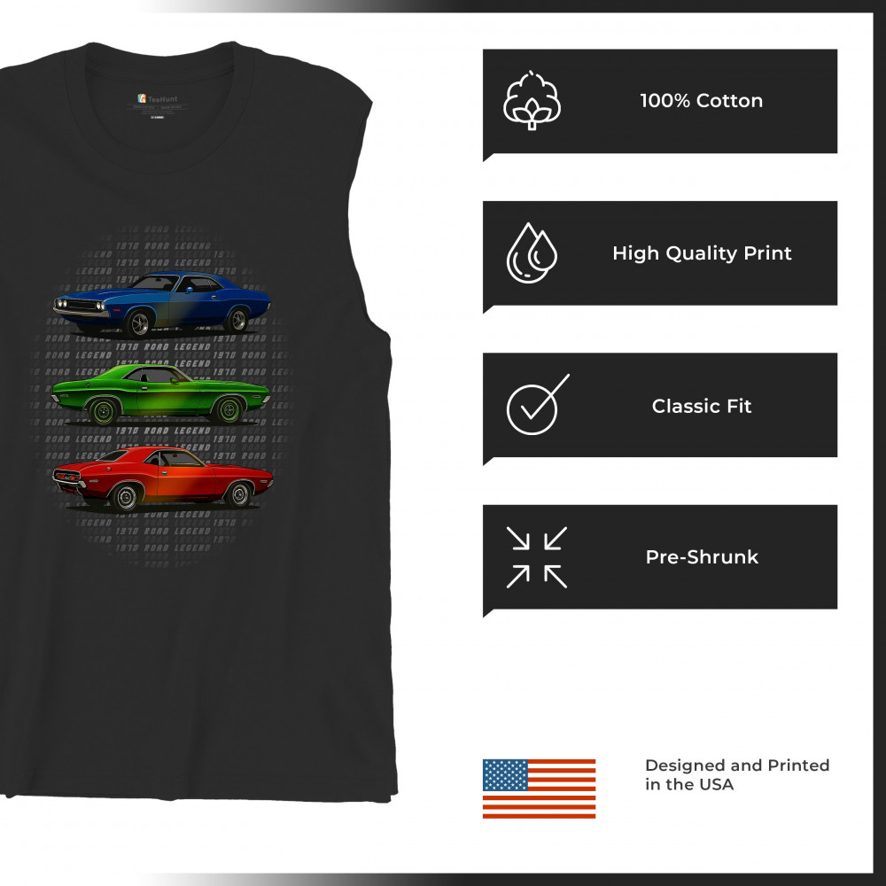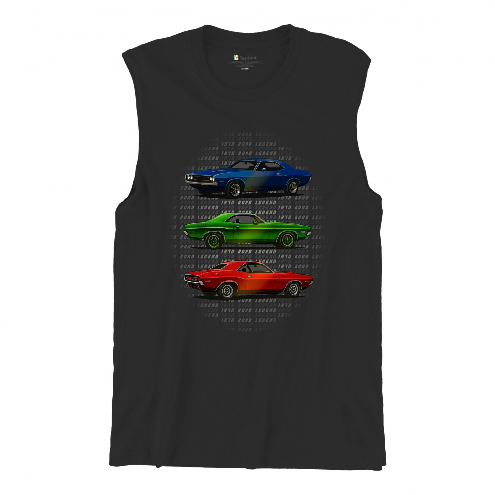 Three bold 1970 muscle cars, stacked in red, green, and blue, celebrate vintage power and road legend status. This retro-inspired design captures the essence of American car culture—made for gearheads, V8 fans, and anyone who lives for classic performance, heritage, and style.