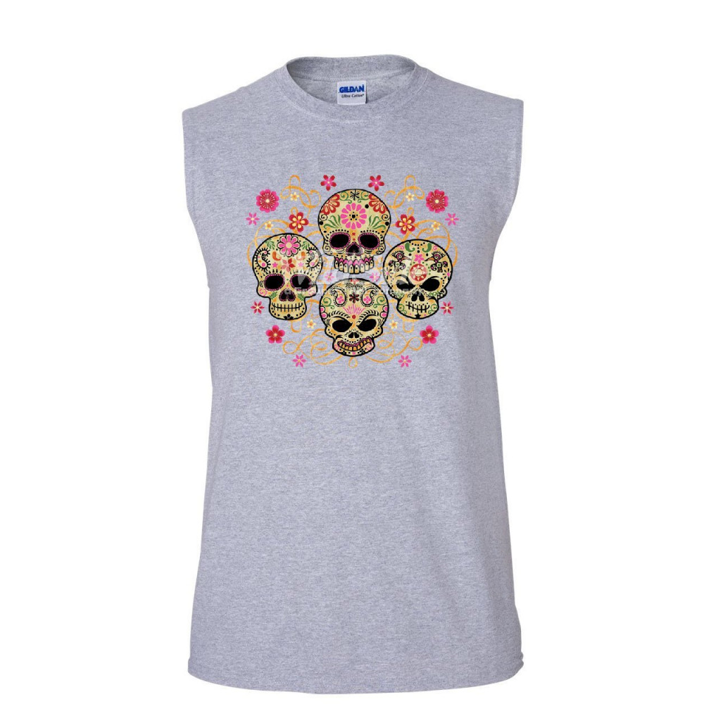 4 CUTE SUGAR SKULLS muscle shirt calaveras dia de los muertos mexico sleeveless gray