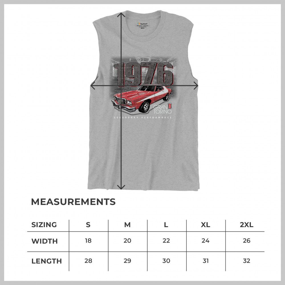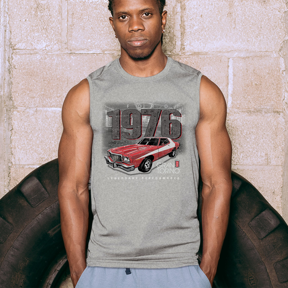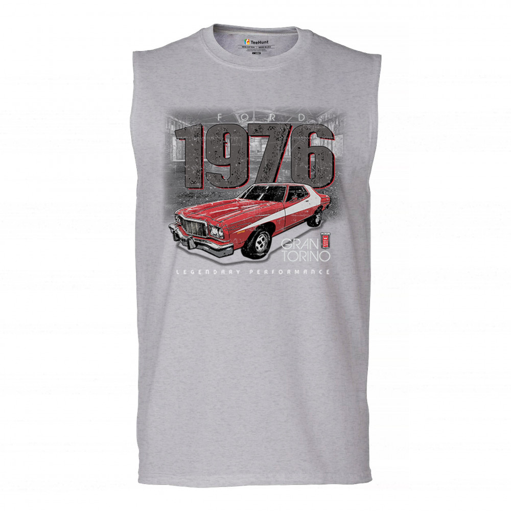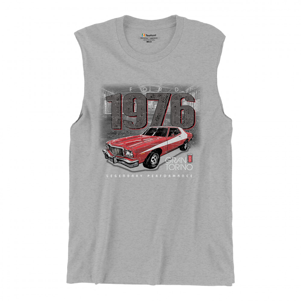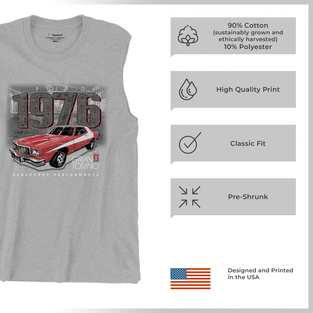 1976 Ford Gran Torino design with red and white retro style. Perfect for muscle car fans, Ford lovers, and classic car event gear.