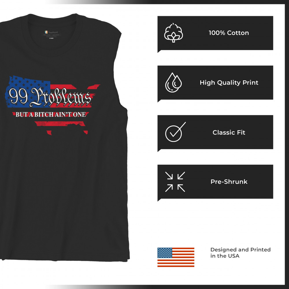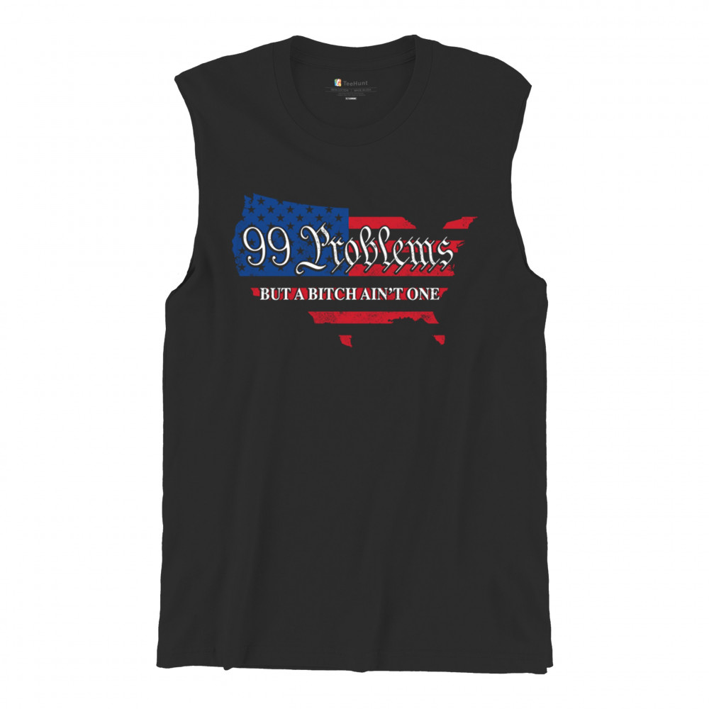 Embrace your patriotic spirit with this striking "99 Problems But a B*tch Ain't One" design, blending the American map and flag-inspired elements. Perfect for Trump supporters, conservatives, and all who believe in the values of freedom, victory, and the Republican Red Wave. Celebrate your commitment to America and make a statement that reflects your unwavering belief in the people's mandate and the party of common sense.