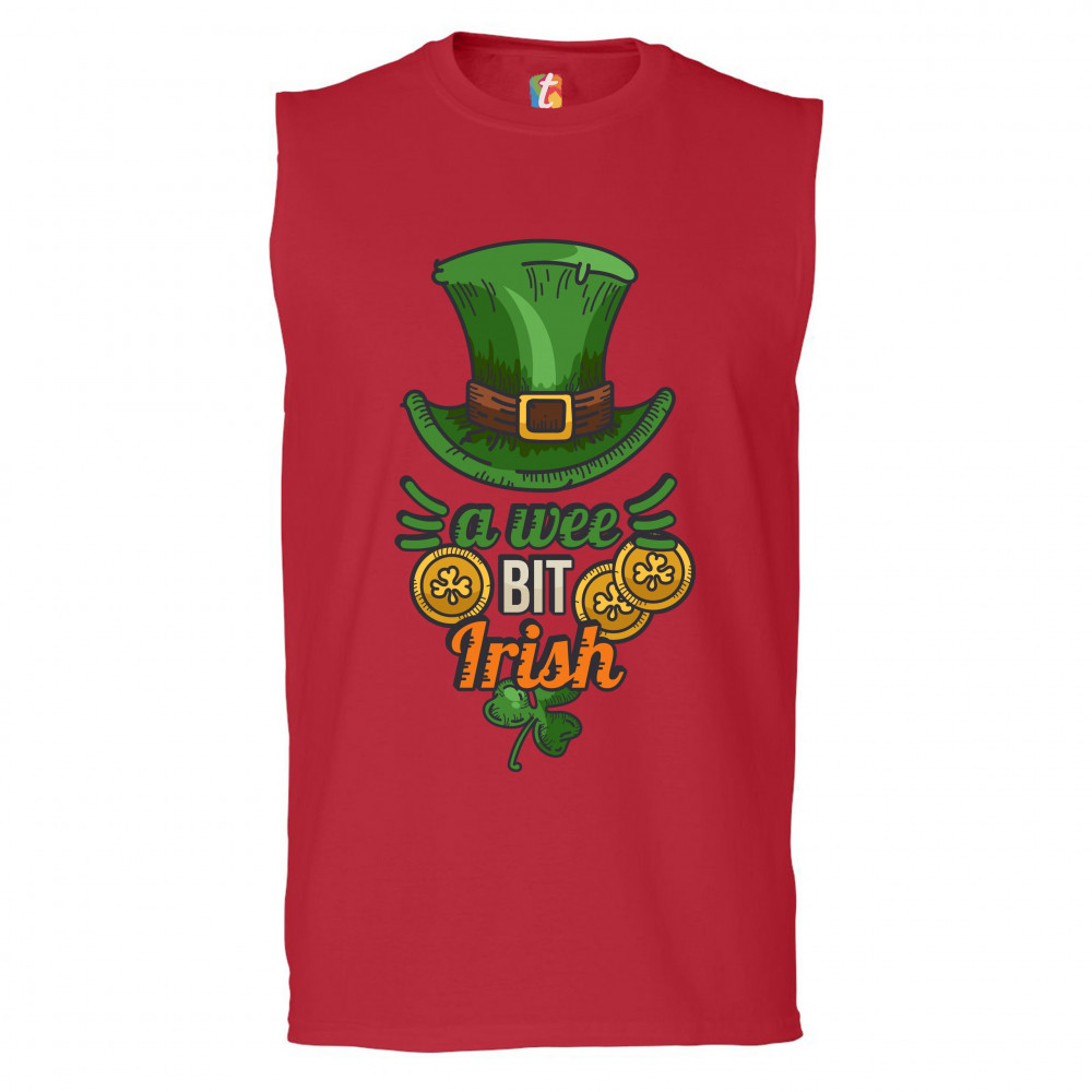 A WEE BIT IRISH muscle shirt st. patrick's day shamrock leprechaun hat men's red