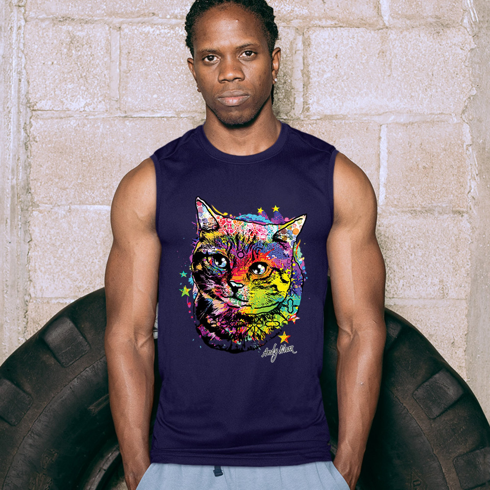 ADORABLE KITTEN muscle shirt neon multicolor kitty andy maxx cat lover men's navy blue